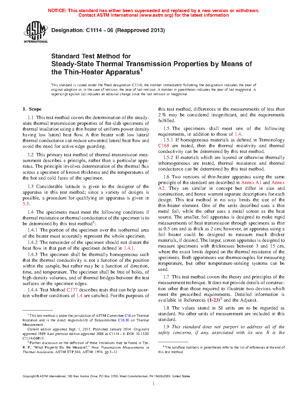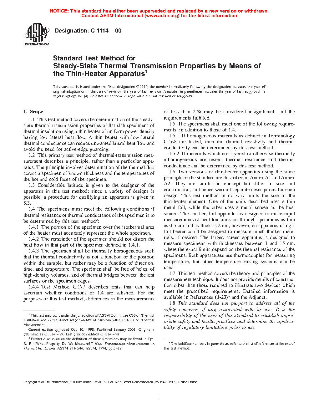1.4 The specimens must meet the following conditions if thermal resistance or thermal conductance of the specimen is to be determined by this test method2:
