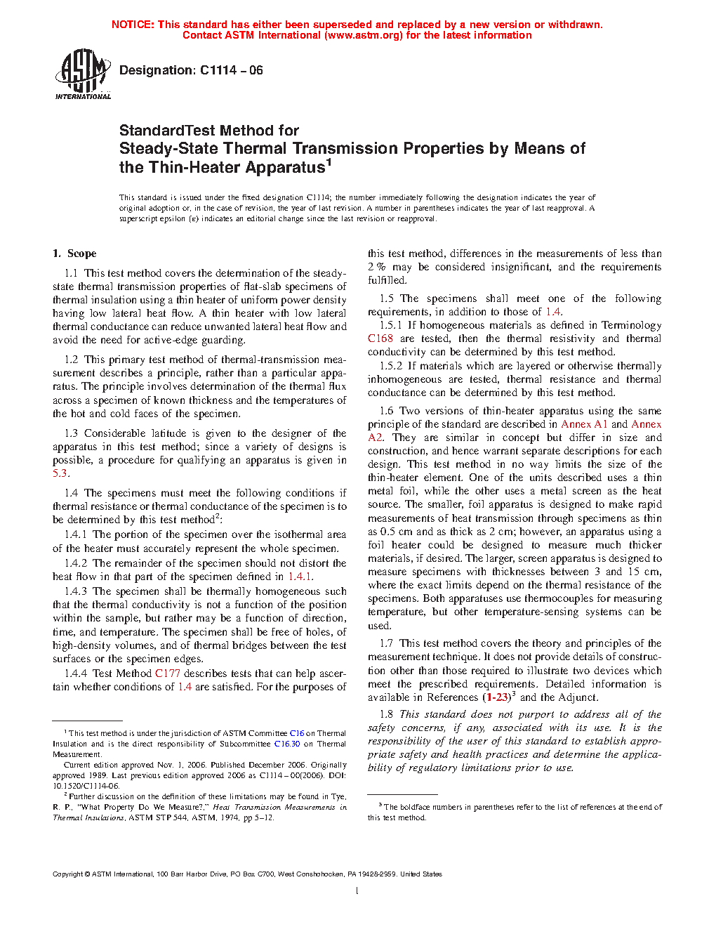 1.7 This test method covers the theory and principles of the measurement technique. It does not provide details of construction other than those required to illustrate two devices which meet the prescribed requirements. Detailed information is available in References (1-23)3 and the Adjunct.