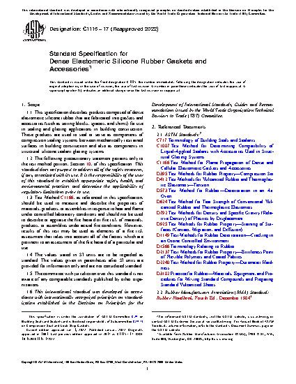 1.1 This specification describes products composed of dense elastomeric silicone rubber that are fabricated into gaskets and accessories (such as setting blocks, spacers, and shims) for use in sealing and glazing applications in building construction. These products are used to seal or serve as components of compression sealing systems between mechanically restrained surfaces in building construction and also as components in structural silicone sealant glazing systems.