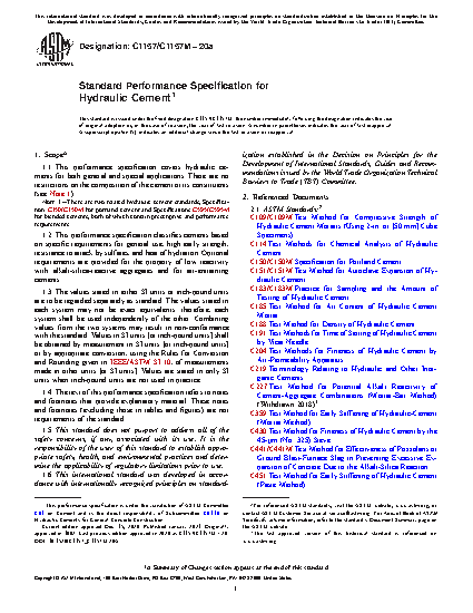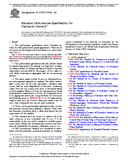 Note 1: There are two related hydraulic cement standards, Specification C150/C150M for portland cement and Specifications C595/C595M for blended cements, both of which contain prescriptive and performance requirements