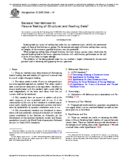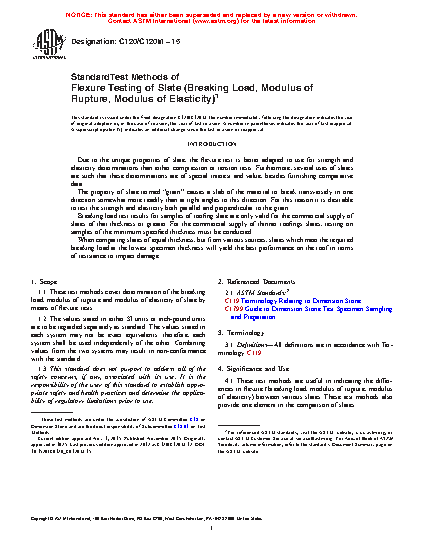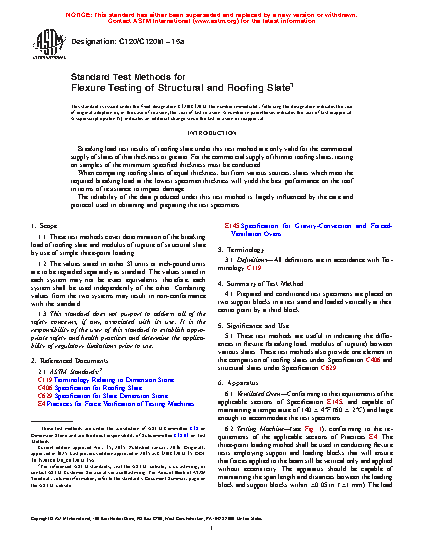 1.1 These test methods cover determination of the breaking load, modulus of rupture and modulus of elasticity of slate by means of flexure tests.