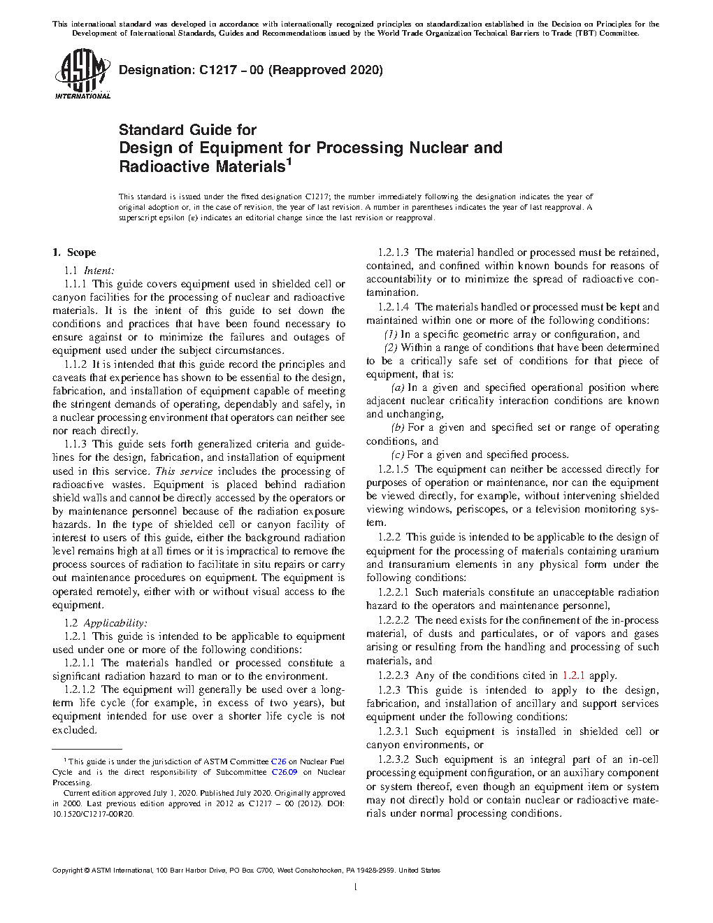 1.1.2 It is intended that this guide record the principles and caveats that experience has shown to be essential to the design, fabrication, and installation of equipment capable of meeting the stringent demands of operating, dependably and safely, in a nuclear processing environment that operators can neither see nor reach directly.