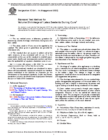 1.1 This test method covers a laboratory procedure for determining volume shrinkage, which occurs during cure, of a latex sealant.