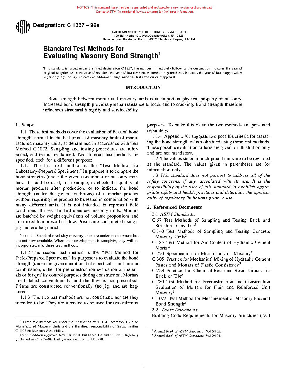 Note 1—Standard fired clay masonry units are under development but are not now available. When their development is complete, they will be incorporated into these test methods.
