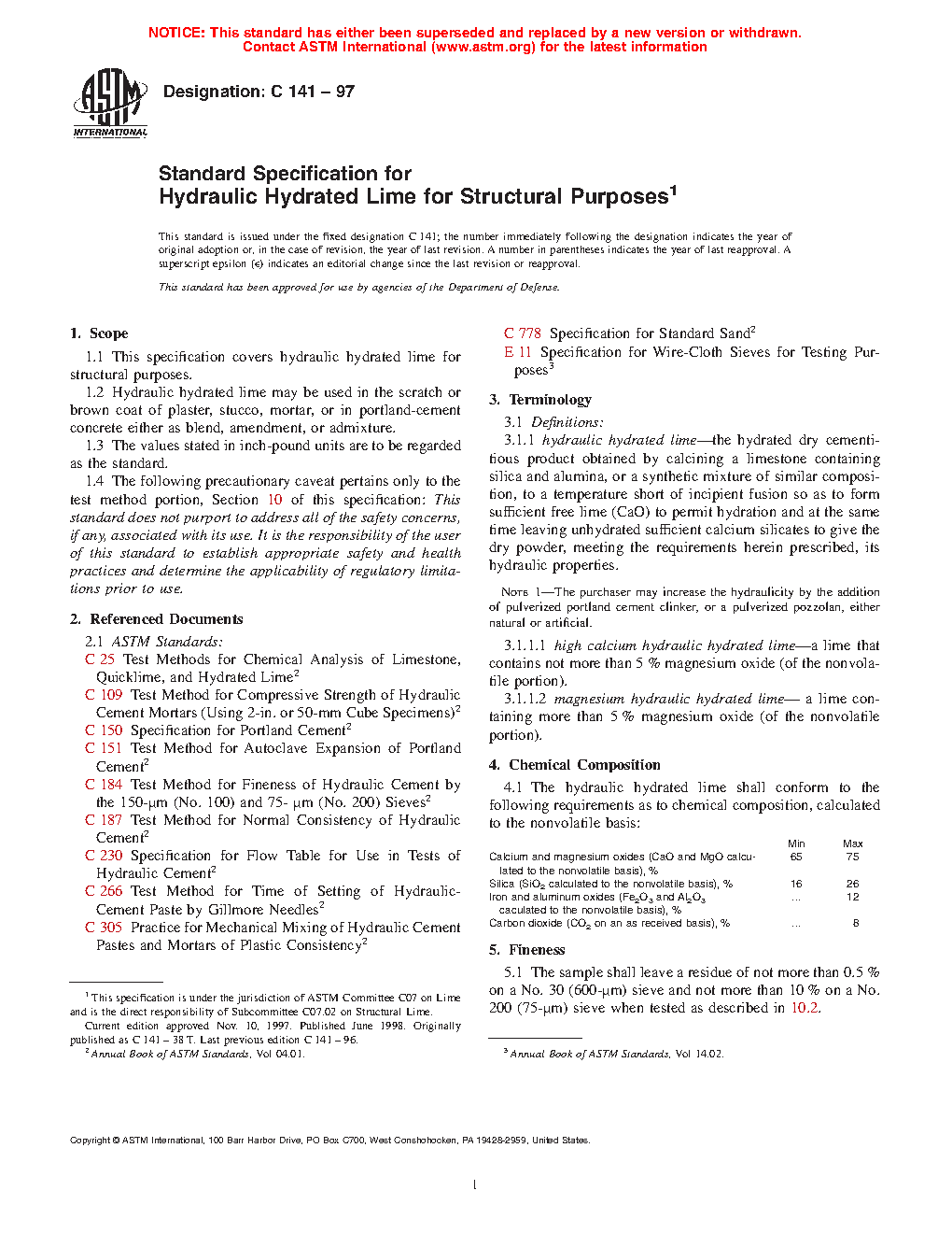 1.1 This specification covers hydraulic hydrated lime for structural purposes.