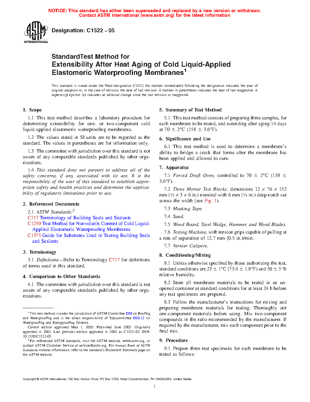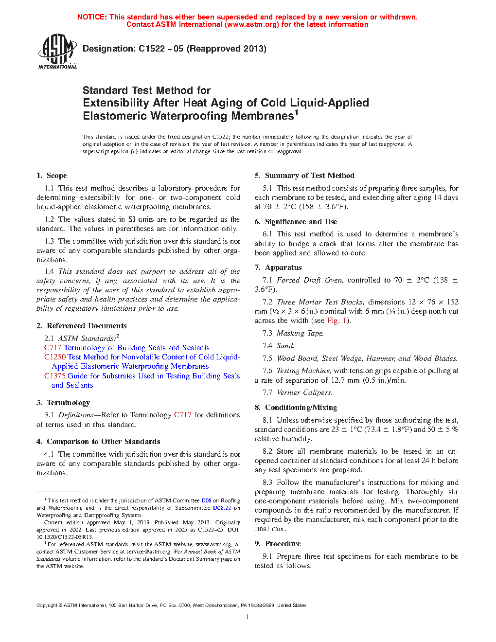 6.1 This test method is used to determine a membrane's ability to bridge a crack that forms after the membrane has been applied and allowed to cure.