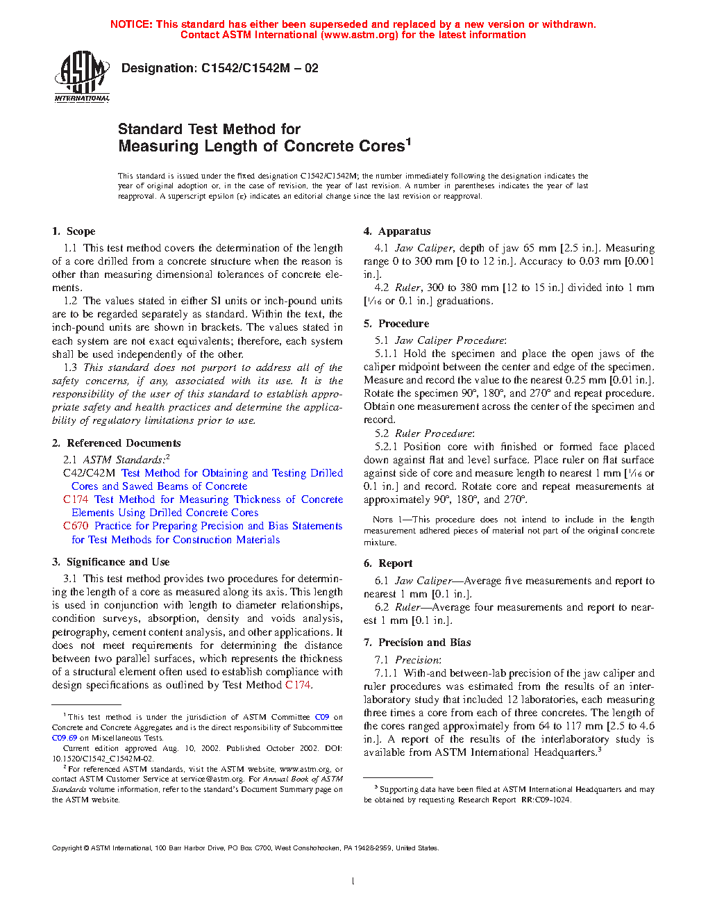 1.1 This test method is used to determine the length of a core drilled from concrete.