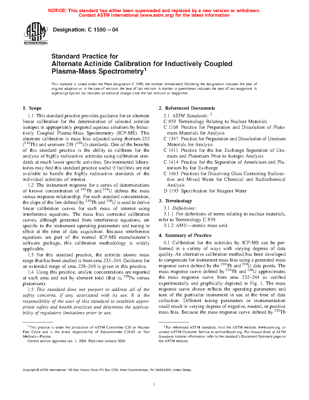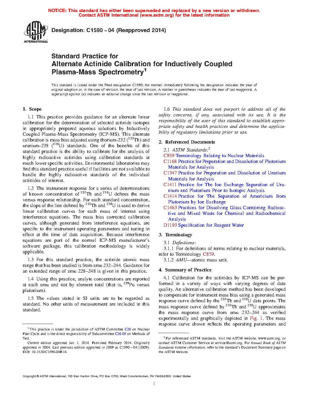 1.3 For this standard practice, the actinide atomic mass range that has been studied is from amu 232-244. Guidance for an extended range of amu 228-248 is given in this practice.