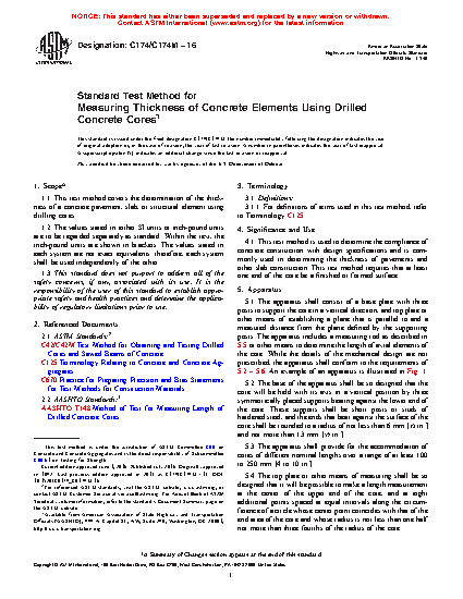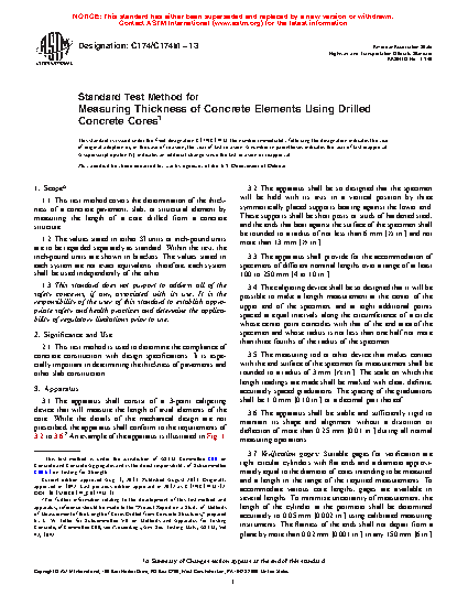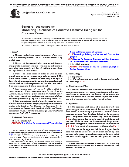 1.1 This test method covers the determination of the thickness of a concrete pavement, slab, or structural element by measuring the length of a core drilled from a concrete structure.