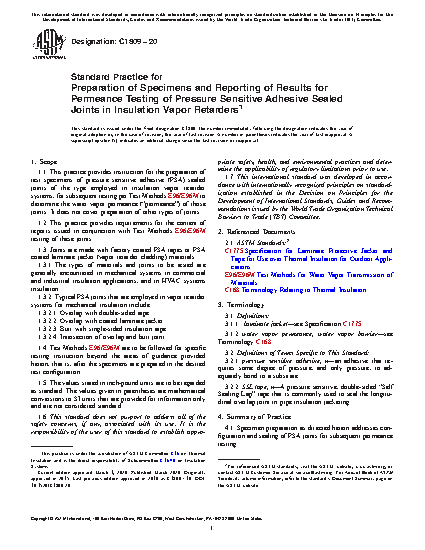 1.1 This practice provides instruction for the preparation of test specimens of pressure sensitive adhesive (PSA) sealed joints of the type employed in insulation vapor retarder systems, for subsequent testing per Test Methods E96/E96M to determine the water vapor permeance (“permeance”) of those joints. It does not cover preparation of other types of joints.