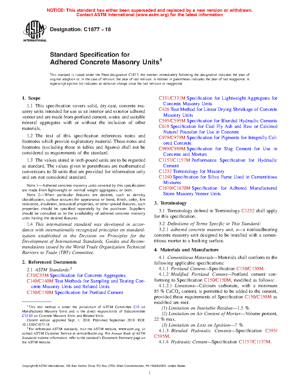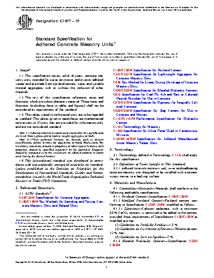 Note 2: When particular features are desired, such as density classification, surface textures for appearance or bond, finish, color, fire resistance, insulation, acoustical properties, or other special features, such properties should be specified separately by the purchaser. Suppliers should be consulted as to the availability of adhered concrete masonry units having the desired features.