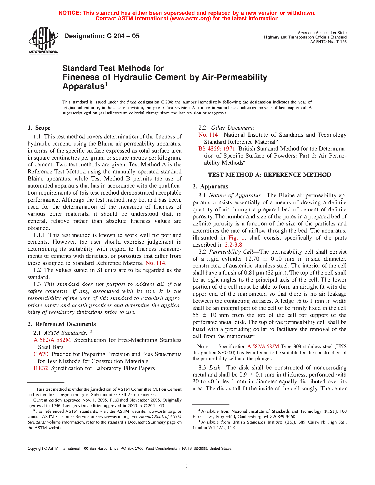 1.1.1 This test method is known to work well for portland cements. However, the user should exercise judgment in determining its suitability with regard to fineness measurements of cements with densities, or porosities that differ from those assigned to Standard Reference Material No. 114.