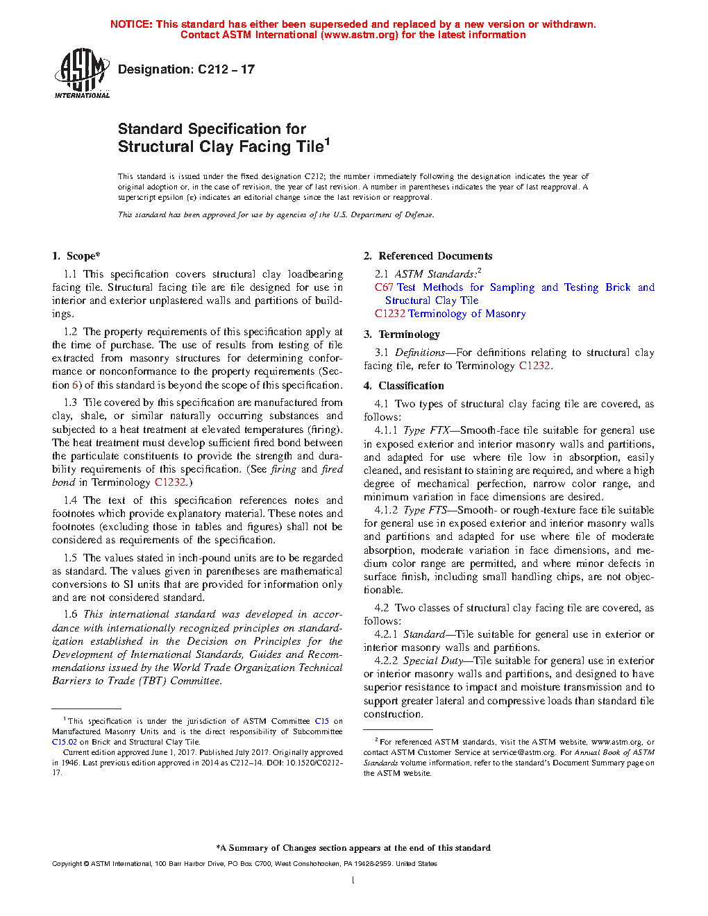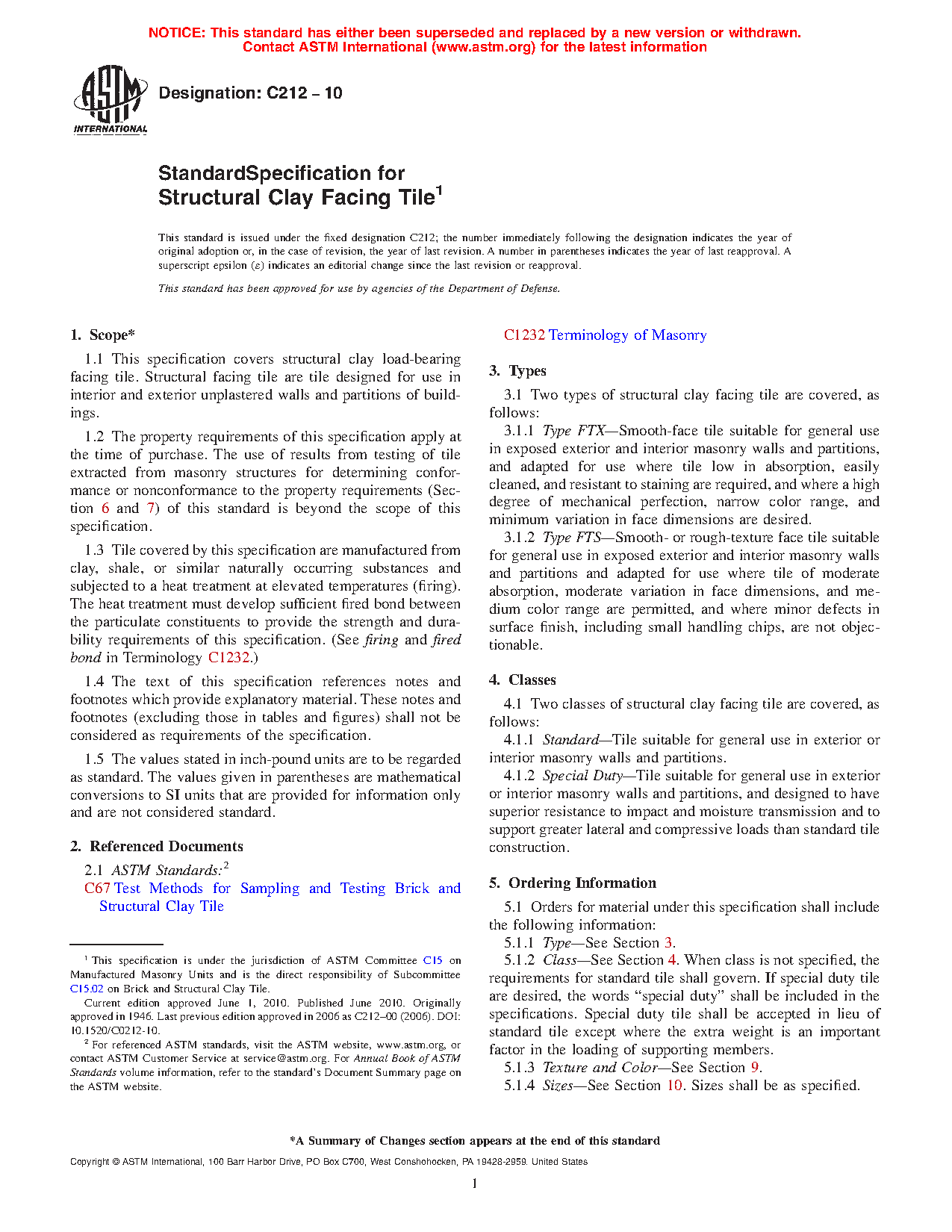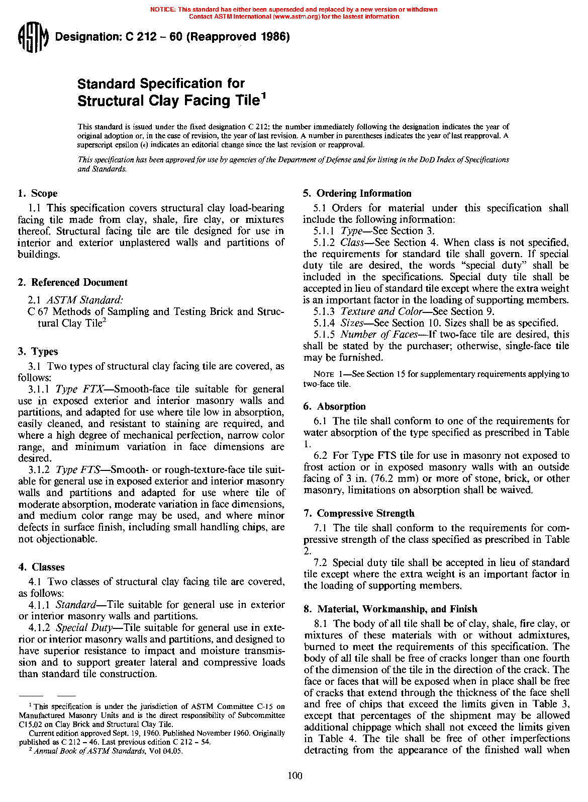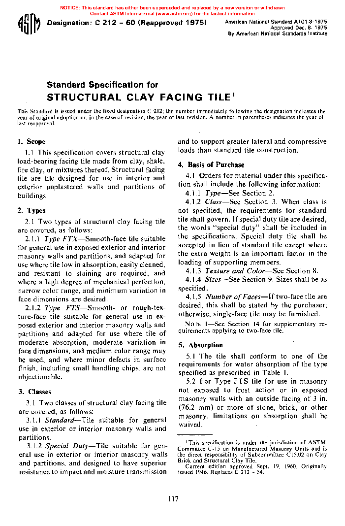 1.1 This specification covers structural clay load-bearing facing tile. Structural facing tile are tile designed for use in interior and exterior unplastered walls and partitions of buildings.