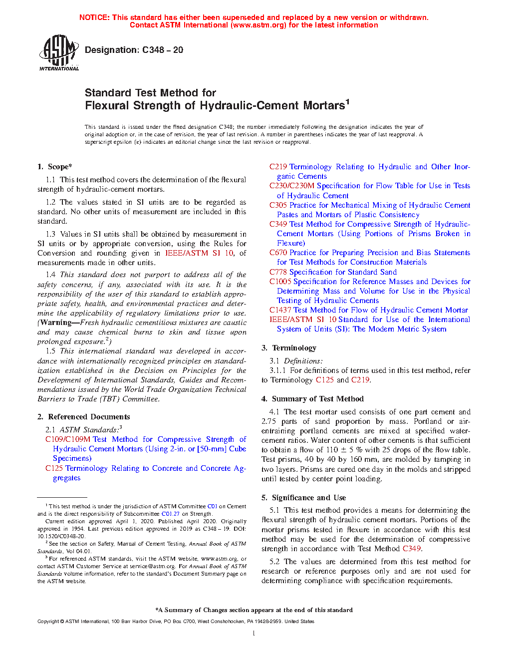 Standard Test Method for Flexural Strength of Hydraulic-Cement Mortars