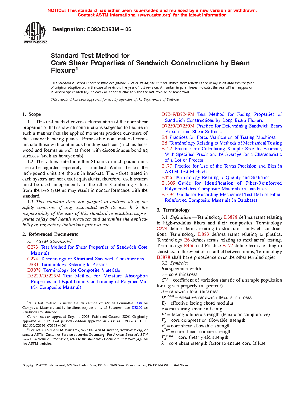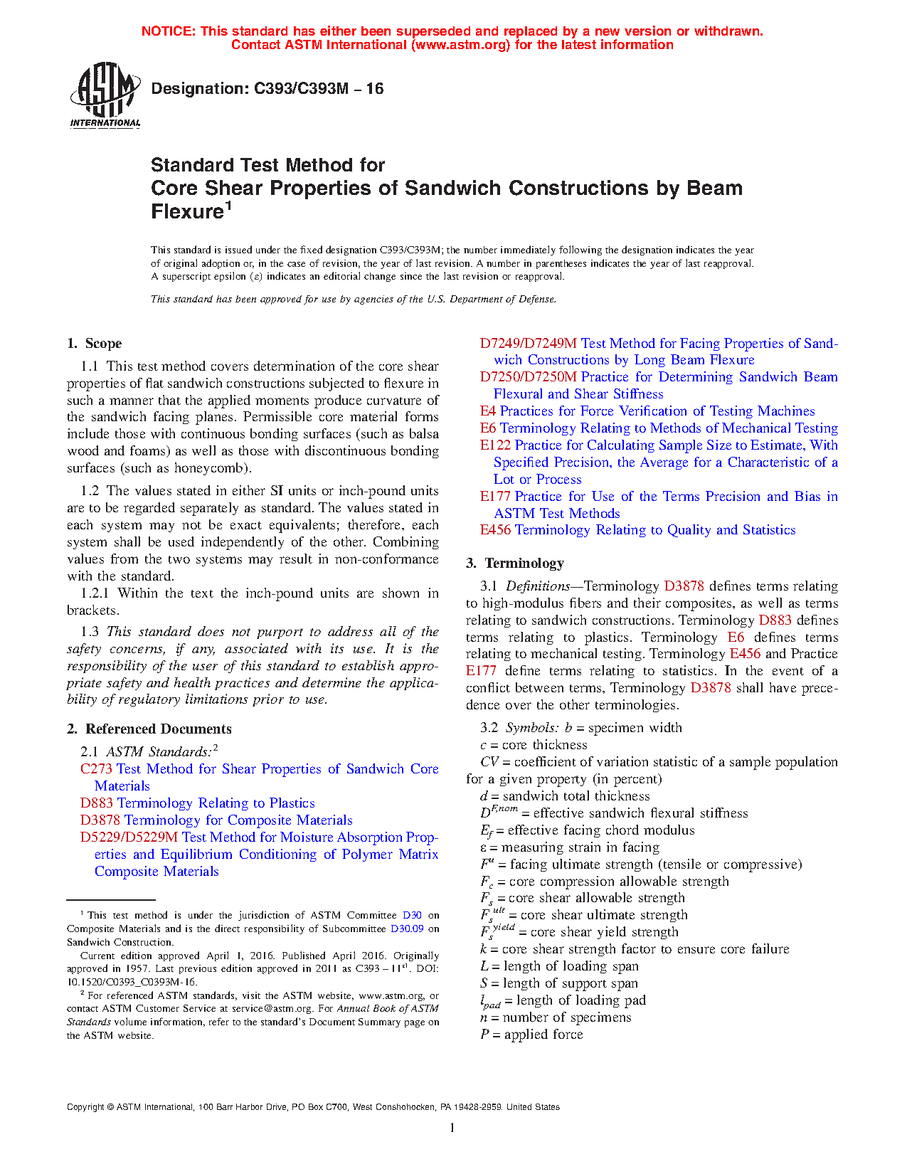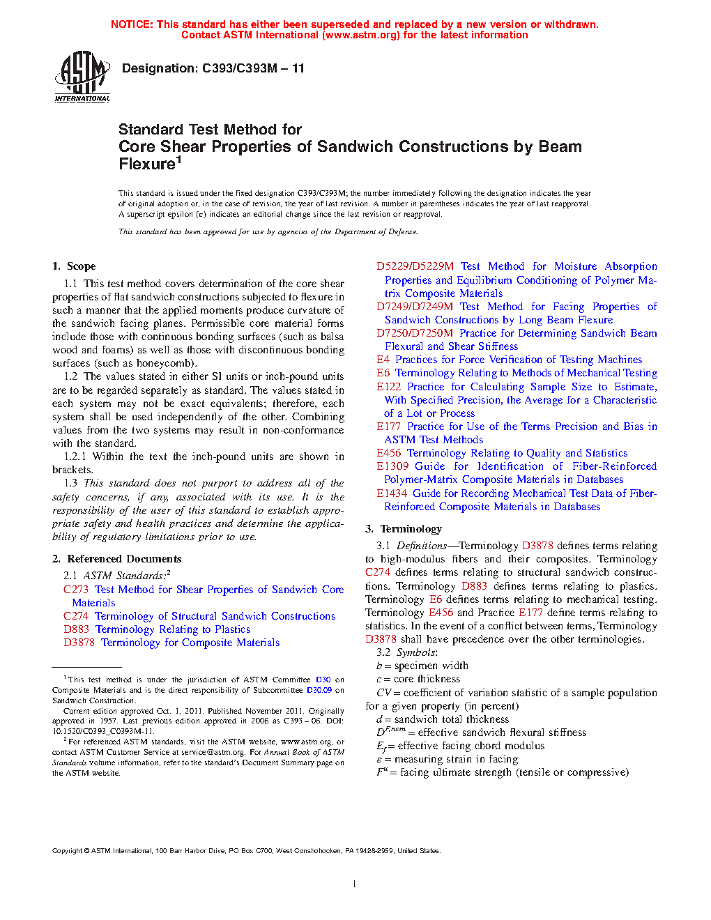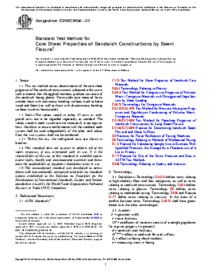 Note 1: Core shear strength and shear modulus are best determined in accordance with Test Method C273, provided bare core material is available.