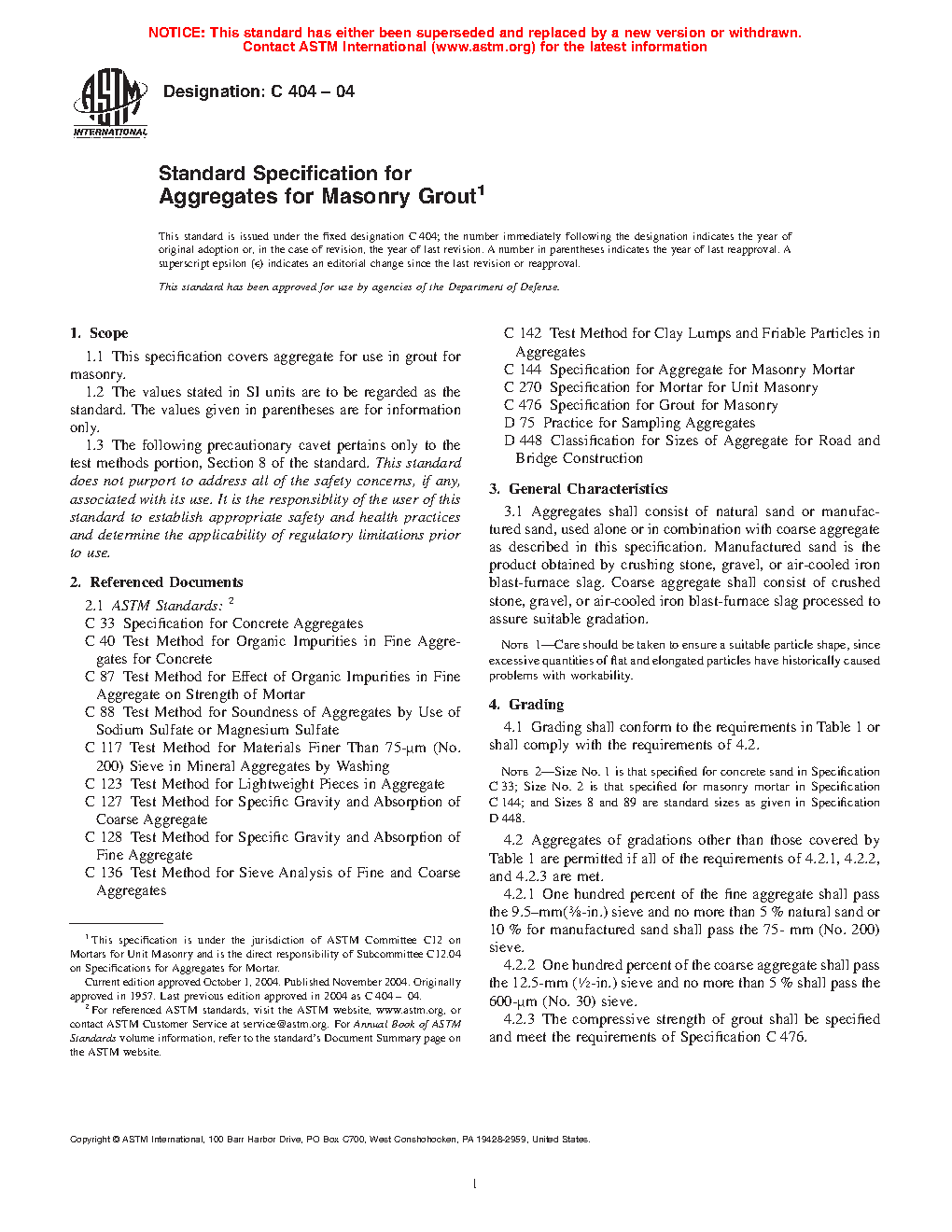 1.1 This specification covers aggregate for use in grout for masonry.