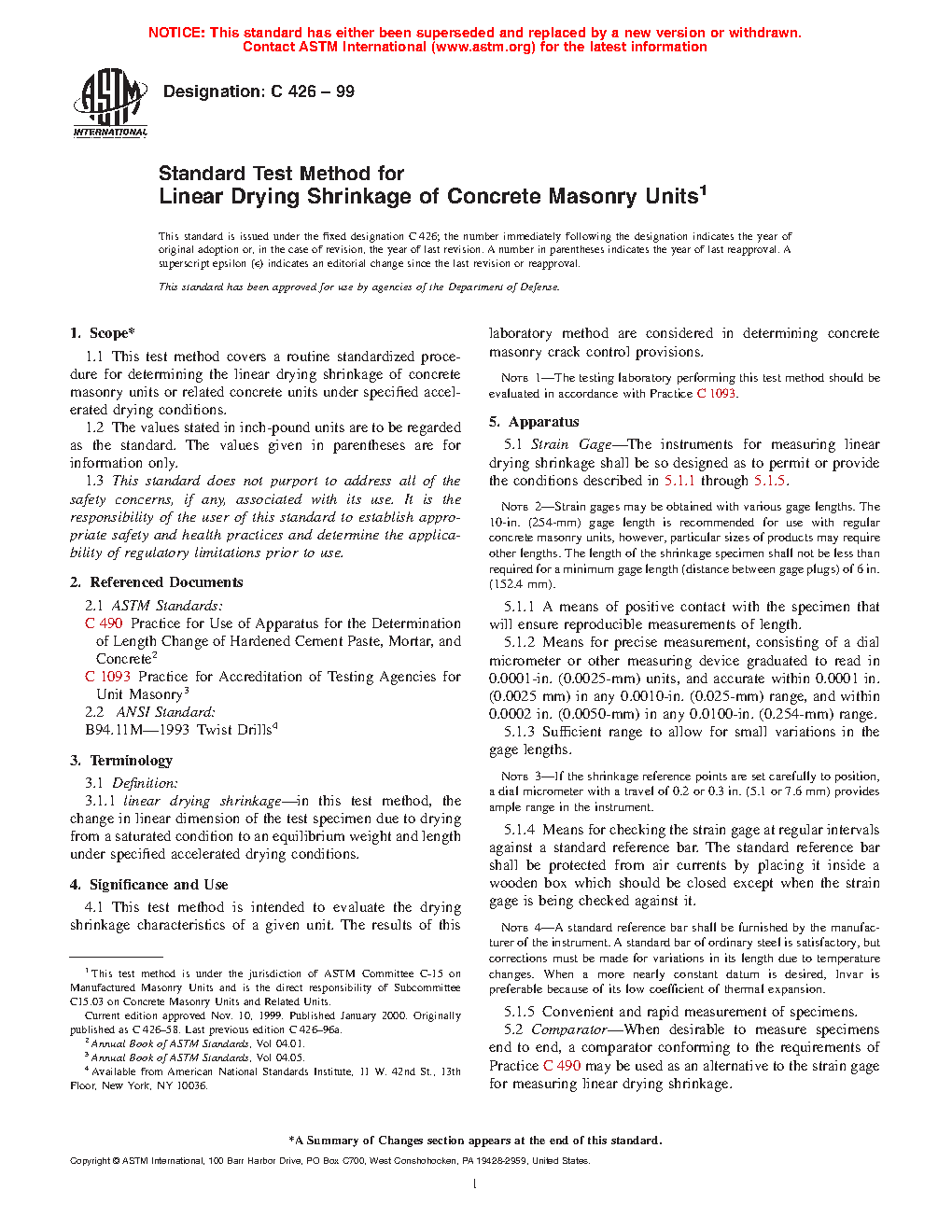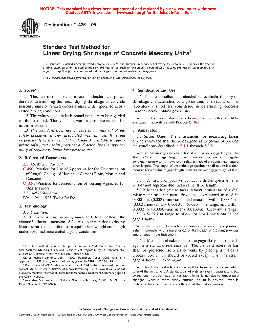 4.1 This test method is intended to evaluate the drying shrinkage characteristics of a given unit. The results of this laboratory method are considered in determining concrete masonry crack control provisions.