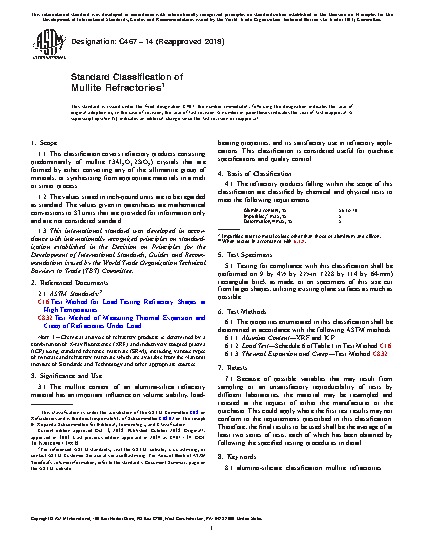 1.1 This classification covers refractory products consisting predominantly of mullite (3 Al2O3[dot]2 SiO2) crystals that are formed by either converting any of the sillimanite group of minerals, or synthesizing from appropriate materials in a melt or sinter process.
