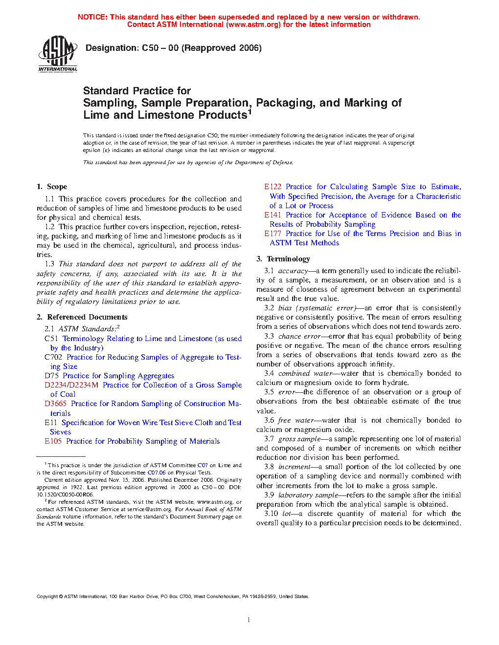 1.2 This practice further covers inspection, rejection, retesting, packing, and marking of lime and limestone products as it may be used in the chemical, agricultural, and process industries.