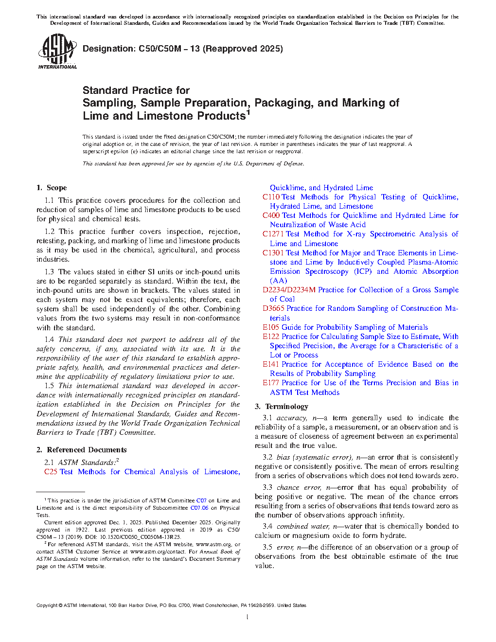 1.2 This practice further covers inspection, rejection, retesting, packing, and marking of lime and limestone products as it may be used in the chemical, agricultural, and process industries.