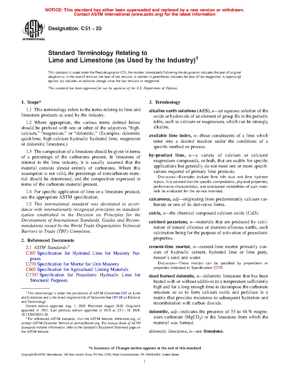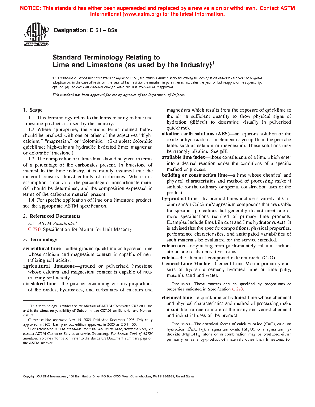 ASTM C51-01