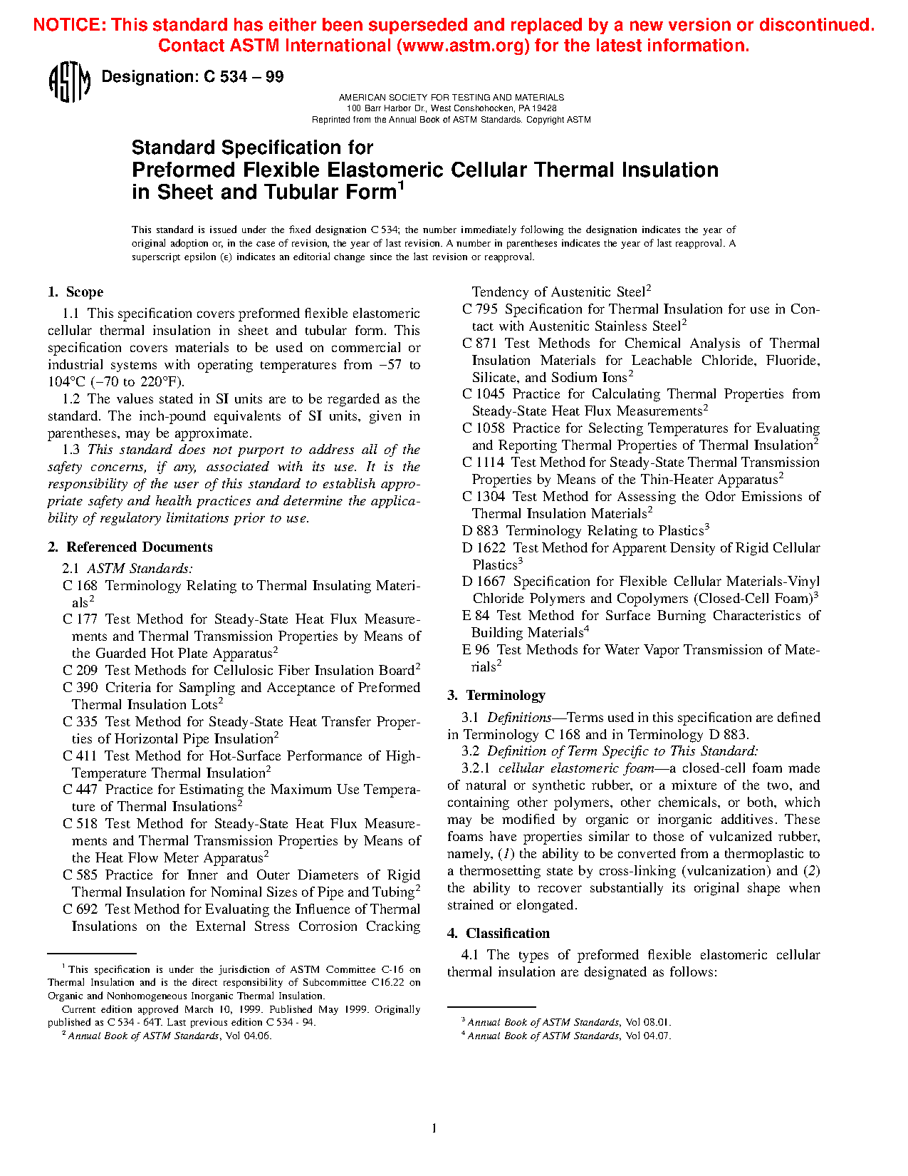 Standard Specification for Performed Flexible Elastomeric Cellular Thermal Insulation in Sheet and Tubular Form