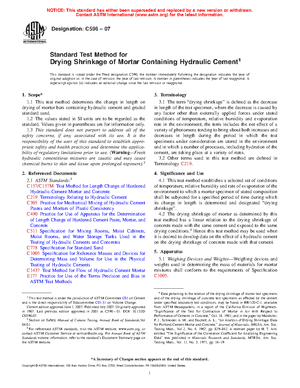 4.1 This test method establishes a selected set of conditions of temperature, relative humidity and rate of evaporation of the environment to which a mortar specimen of stated composition shall be subjected for a specified period of time during which its change in length is determined and designated “drying shrinkage”.