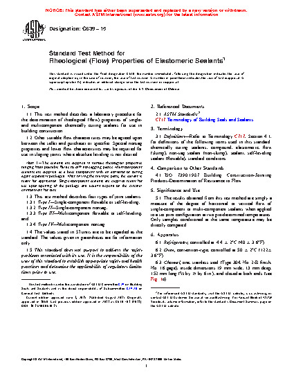 1.1 This test method describes a laboratory procedure for the determination of rheological (flow) properties of single- and multi-component chemically curing sealants for use in building construction.
