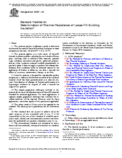 1.1 This practice presents a laboratory guide to determine the thermal resistance of loose-fill building insulations at mean temperatures between -20 and 55°C (-4 to 131°F).