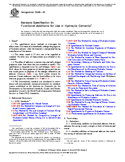 1.3 The effect of additions in cement may markedly change properties other than those they are intended to modify. This specification is designed to test for such changes. Table 1 sets forth values for those properties of cement pastes and mortars that would permit a judgment of the changes effected by an addition. Likewise, Table 2 sets forth similar criteria for concrete. Certain additions may be found effective for more than one purpose as indicated in 3.1.4 and 3.1.5.