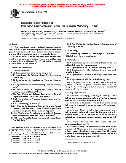 1.1 This specification covers prefaced concrete masonry units with the exposed-to-view-in-place surfaces covered at the point of manufacture with resin, resin and inert filler, or cement and inert filler to produce a smooth resinous tile facing.