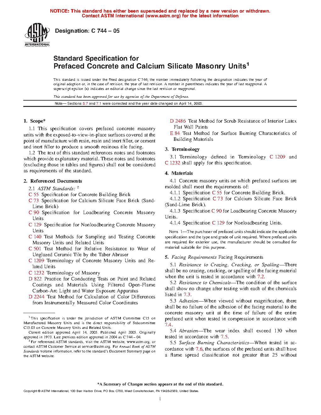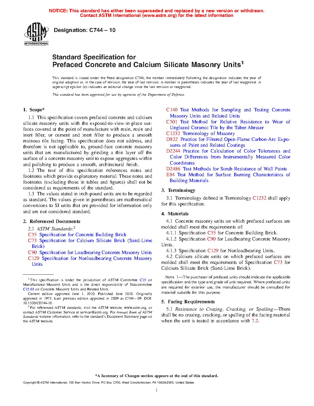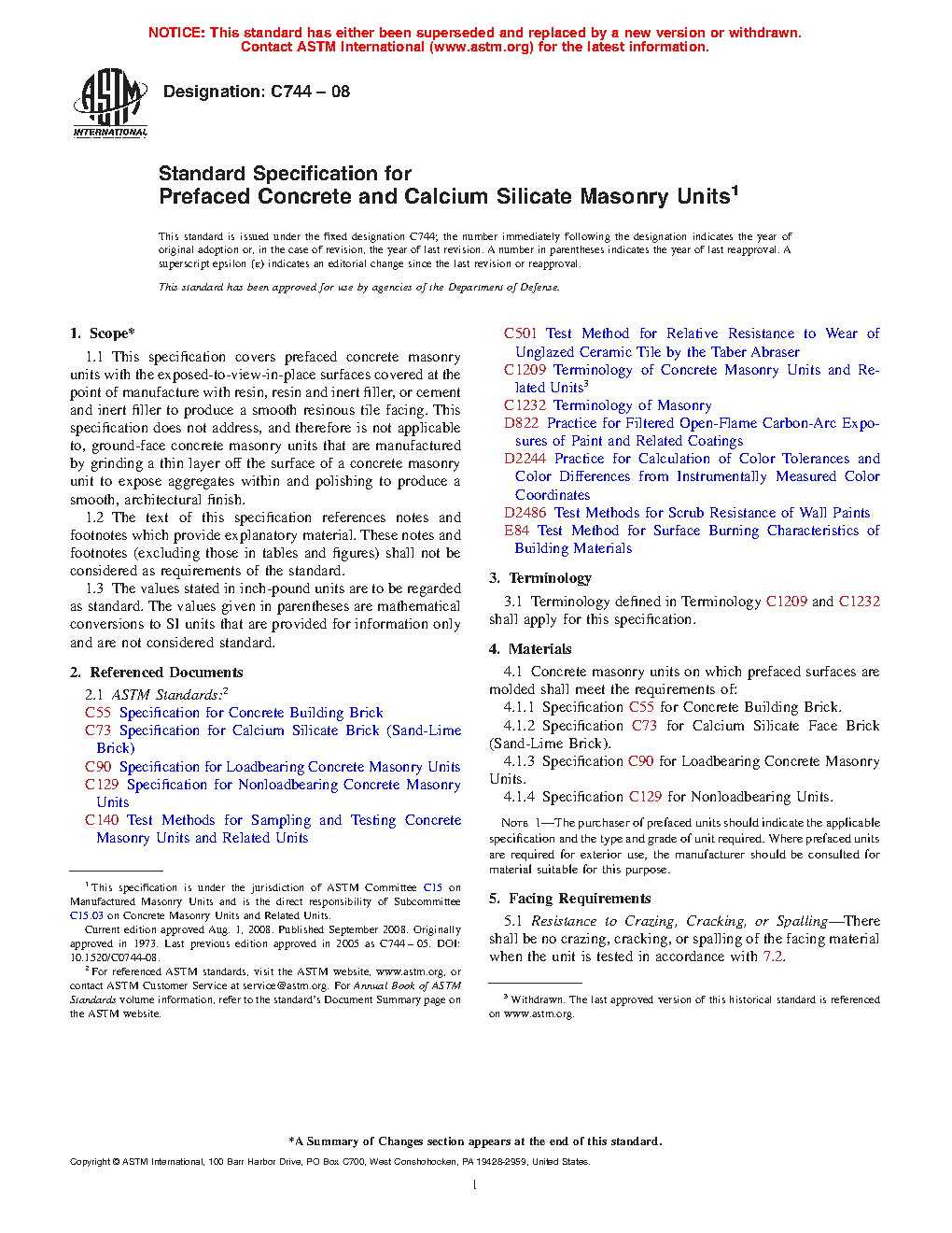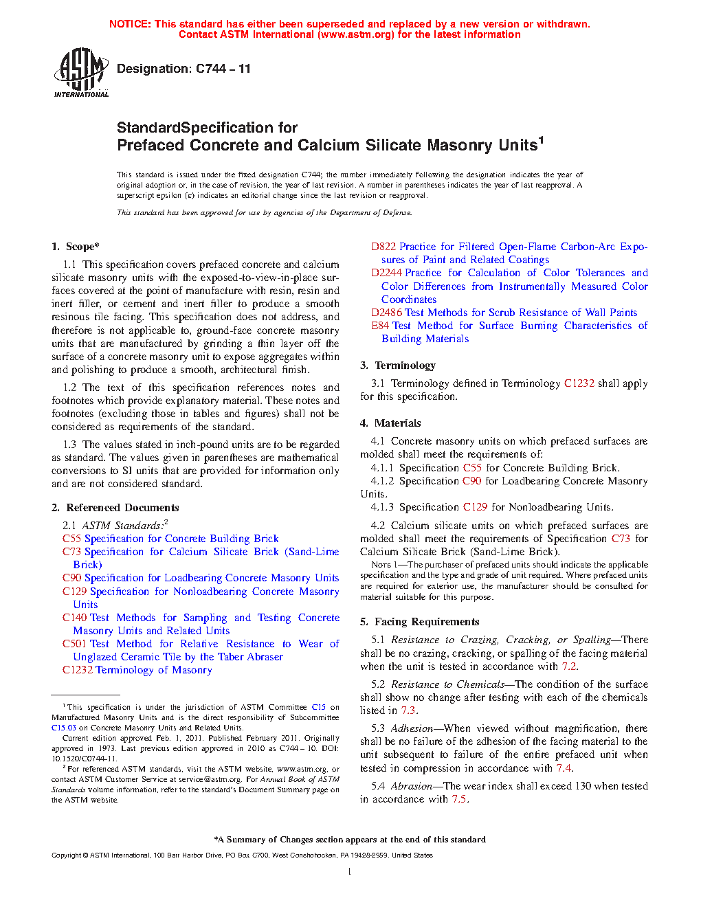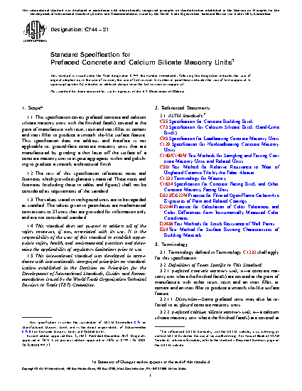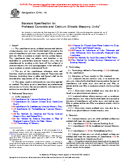 Standard Specification for Prefaced Concrete and Calcium Silicate Masonry Units