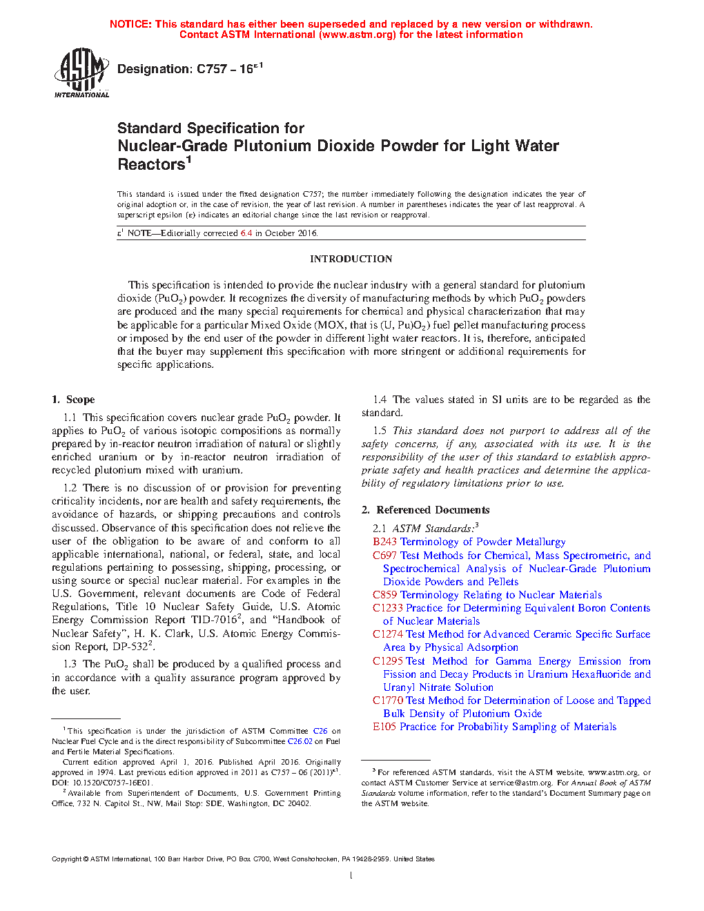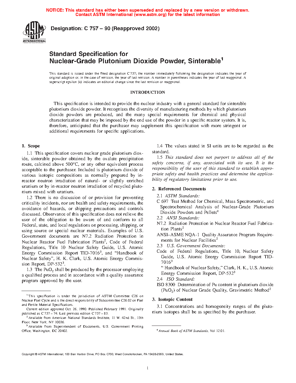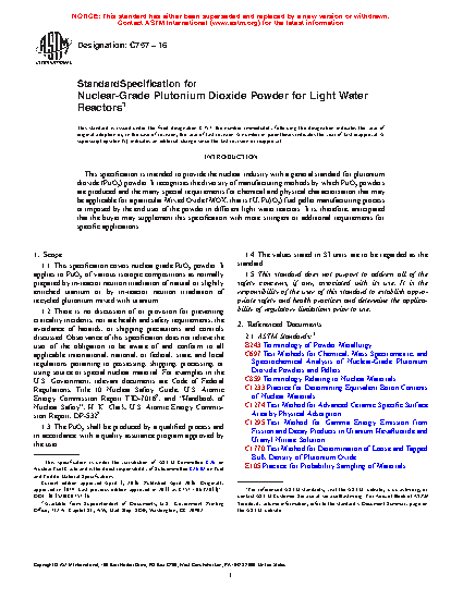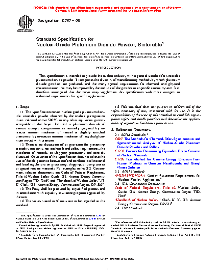 1.2 There is no discussion of or provision for preventing criticality incidents, nor are health and safety requirements, the avoidance of hazards, or shipping precautions and controls discussed. Observance of this specification does not relieve the user of the obligation to be aware of and conform to all applicable international, national, or federal, state, and local regulations pertaining to possessing, shipping, processing, or using source or special nuclear material. For examples in the U.S. Government, relevant documents are Code of Federal Regulations, Title 10 Nuclear Safety Guide, U.S. Atomic Energy Commission Report TID-70162, and “Handbook of Nuclear Safety”, H. K. Clark, U.S. Atomic Energy Commission Report, DP-5322.