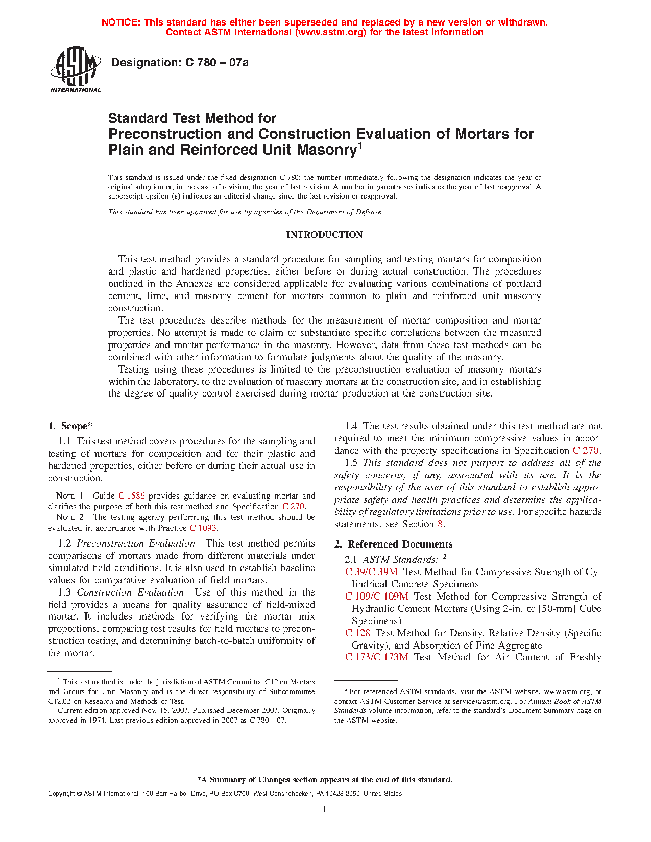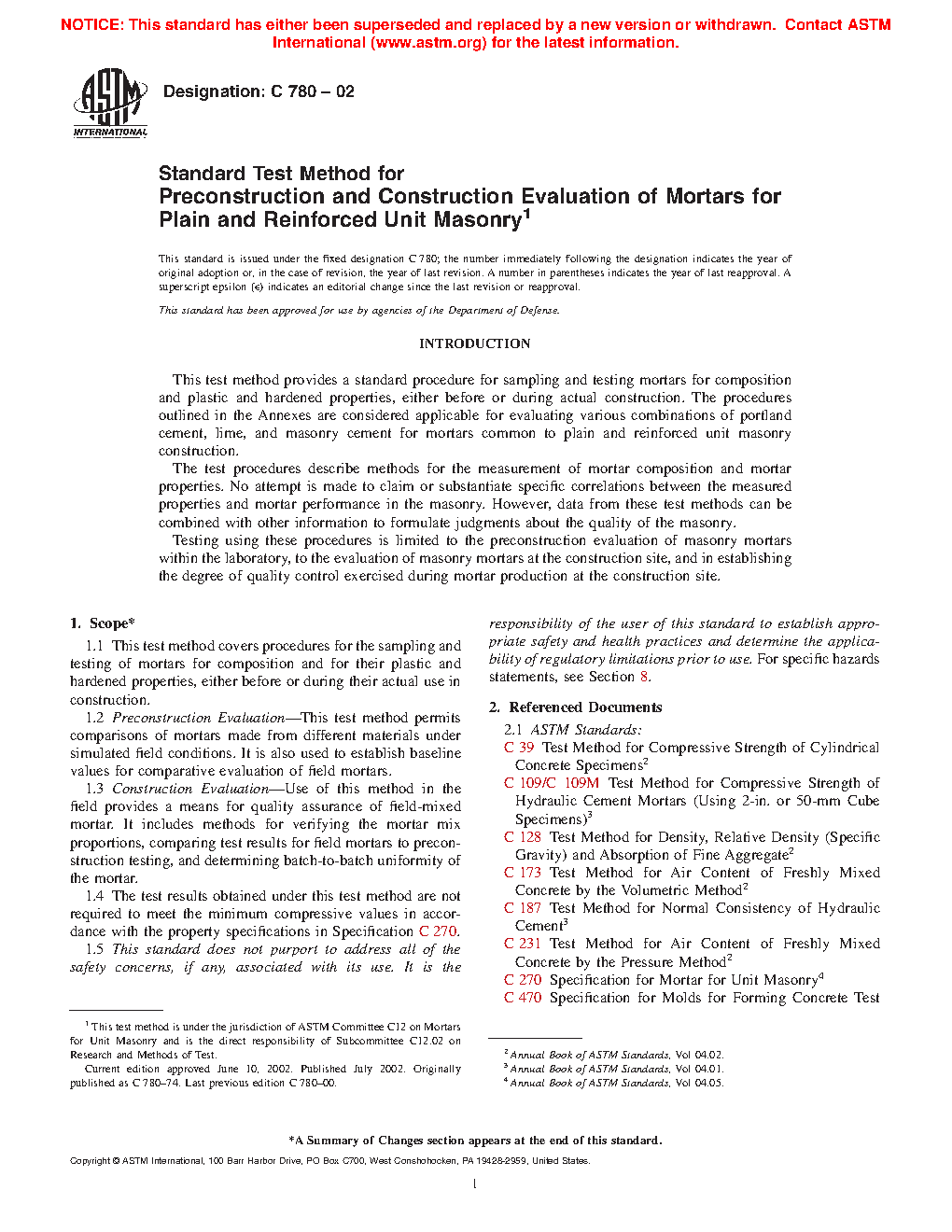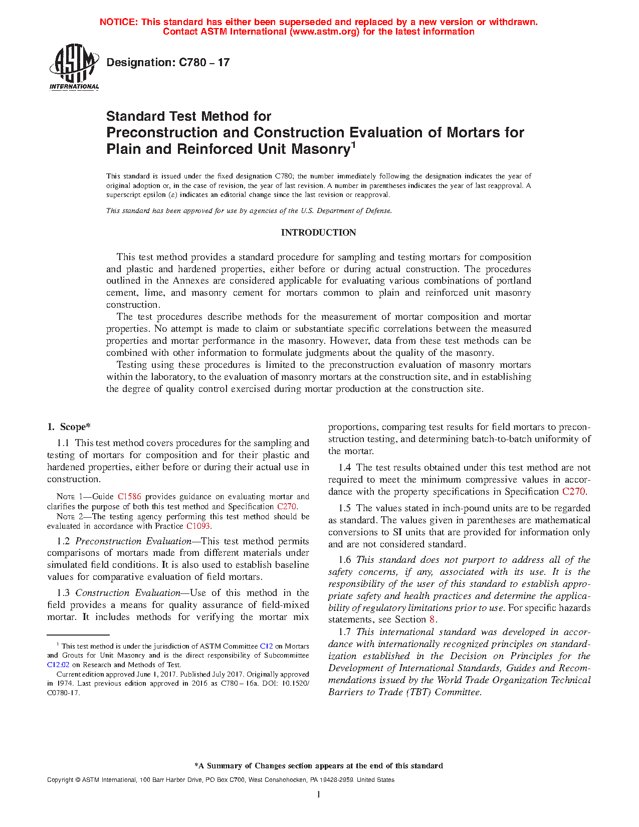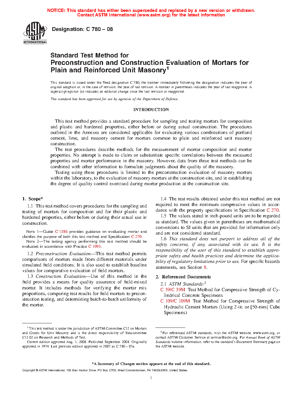 Note 1: Guide C1586 provides guidance on evaluating mortar and clarifies the purpose of both these test methods and Specification C270.
