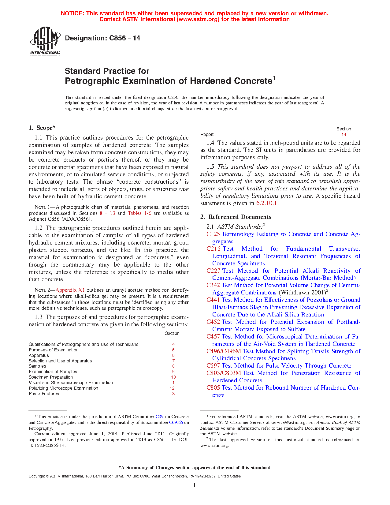 1.3 The purposes of and procedures for petrographic examination of hardened concrete are given in the following sections: