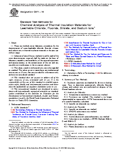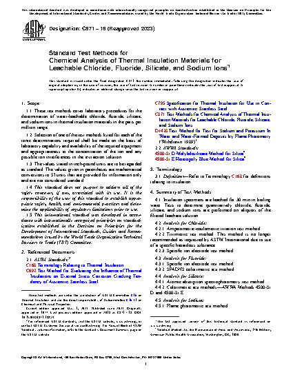 1.1 These test methods cover laboratory procedures for the determination of water-leachable chloride, fluoride, silicate, and sodium ions in thermal insulation materials in the parts per million range.