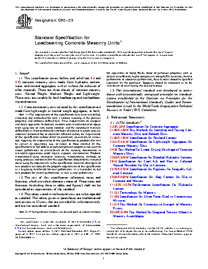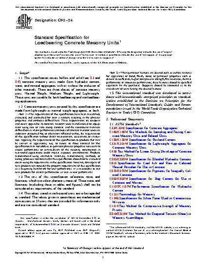 1.1 This specification covers hollow and solid (see 5.3 and 5.4) concrete masonry units made from portland cement, water, and mineral aggregates with or without the inclusion of other materials. There are three classes of concrete masonry units: (1) normal weight, (2) medium weight, and (3) lightweight. There are two types of concrete masonry units: (1) normal weight, (2) medium weight, and (3) lightweight. These units are suitable for both loadbearing and nonloadbearing applications.