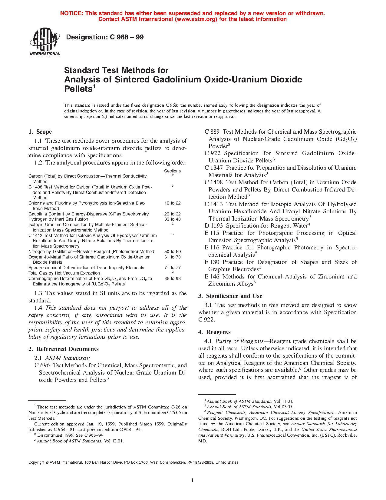 | C1502 Test Method for Determination of Total Chlorine and Fluorine in Uranium Dioxide and Gadolinium Oxide | 3 |