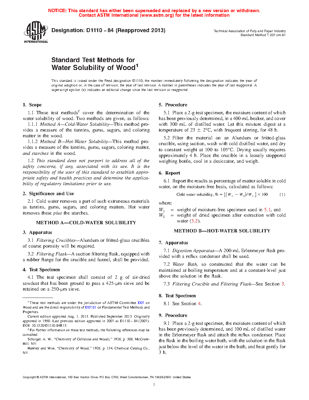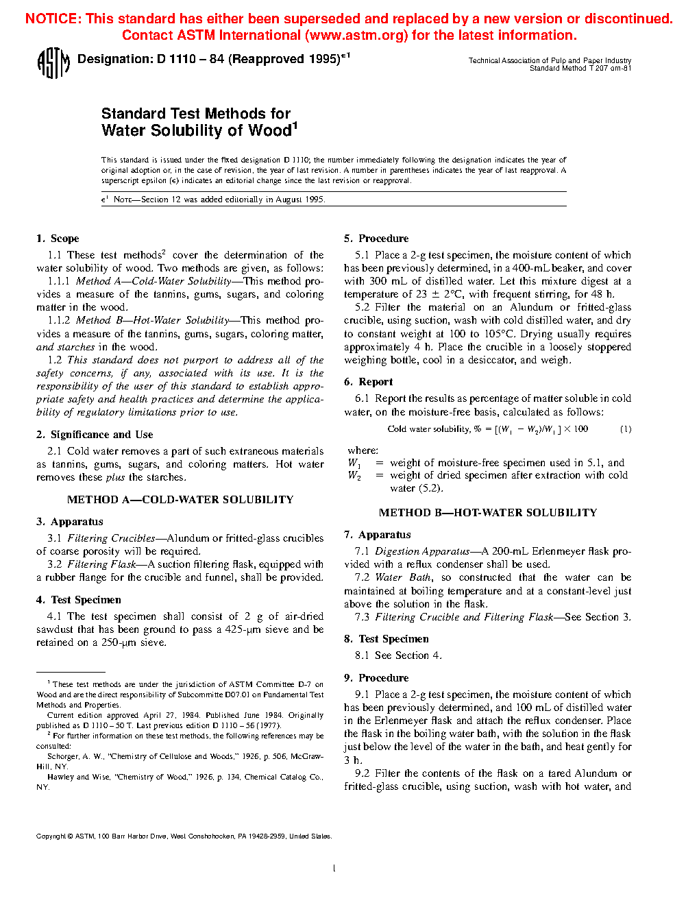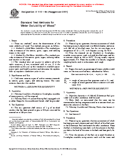 1.1.1 Method A—Cold-Water Solubility—This method provides a measure of the tannins, gums, sugars, and coloring matter in the wood.