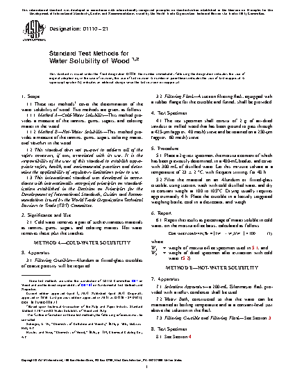 1.1 These test methods cover the determination of the water solubility of wood. Two methods are given, as follows: