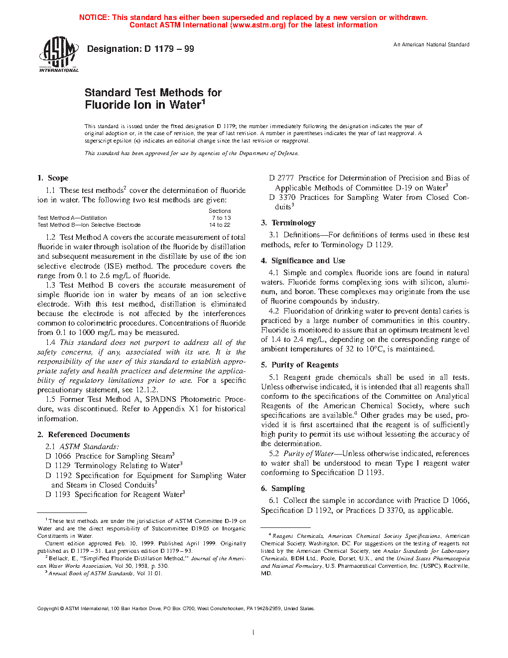 1.5 Former Test Method A, SPADNS Photometric Procedure, was discontinued. Refer to Appendix X1 for historical information.