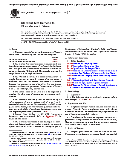 1.1 These test methods cover the determination of fluoride ion in water. The following two test methods are given: