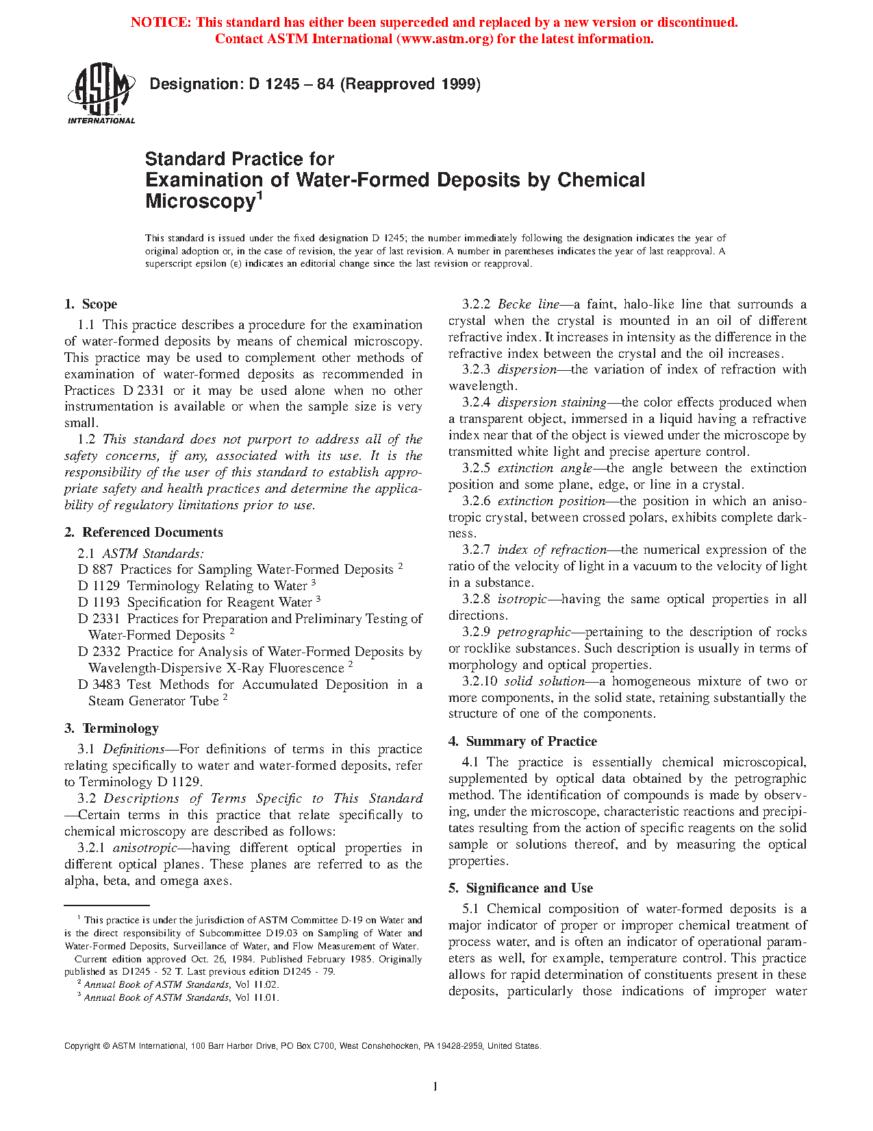 5.3 Qualitative use of this practice should be limited to those deposits whose control is generally known or predictable, based on treatment and feedwater mineral content, and whose constituents are crystalline, or in other ways optically or morphologically distinctive. If these criteria are not met, other techniques of analysis should be used, such as Practice D2332 or Test Methods D3483, or both.