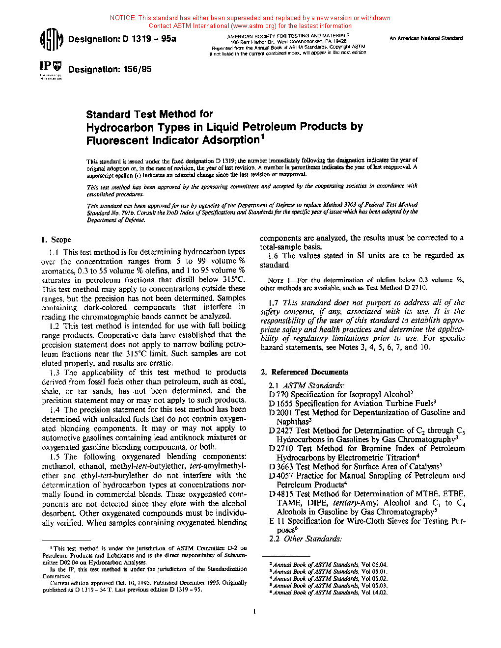 Note 1: For the determination of olefins below 0.3 % by volume, other test methods are available, such as Test Method D2710.