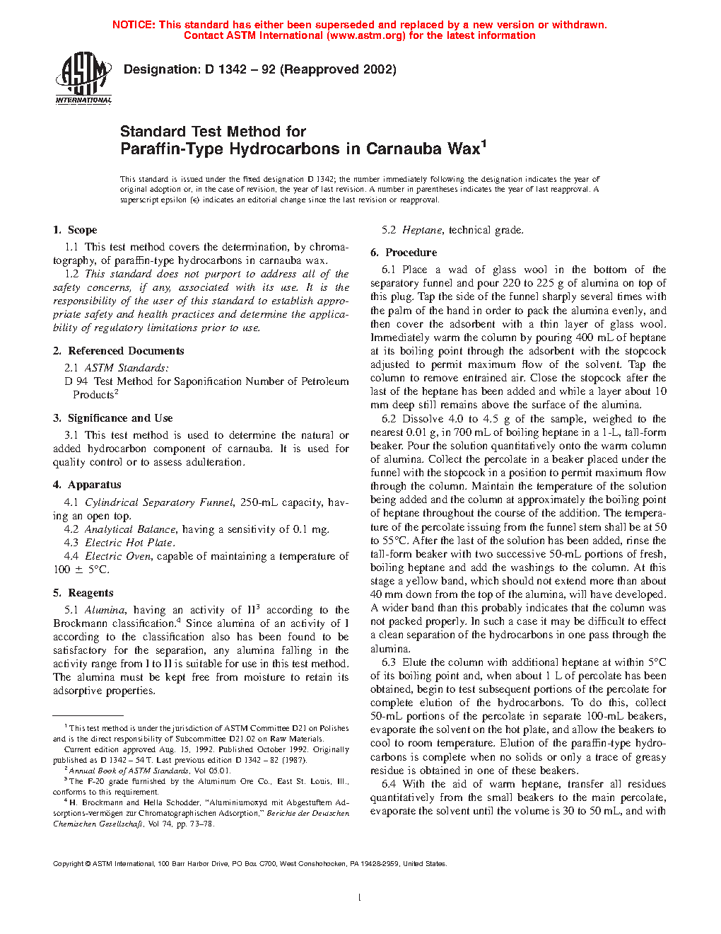 Standard Test Method for Paraffin-Type Hydrocarbons in Carnauba Wax
