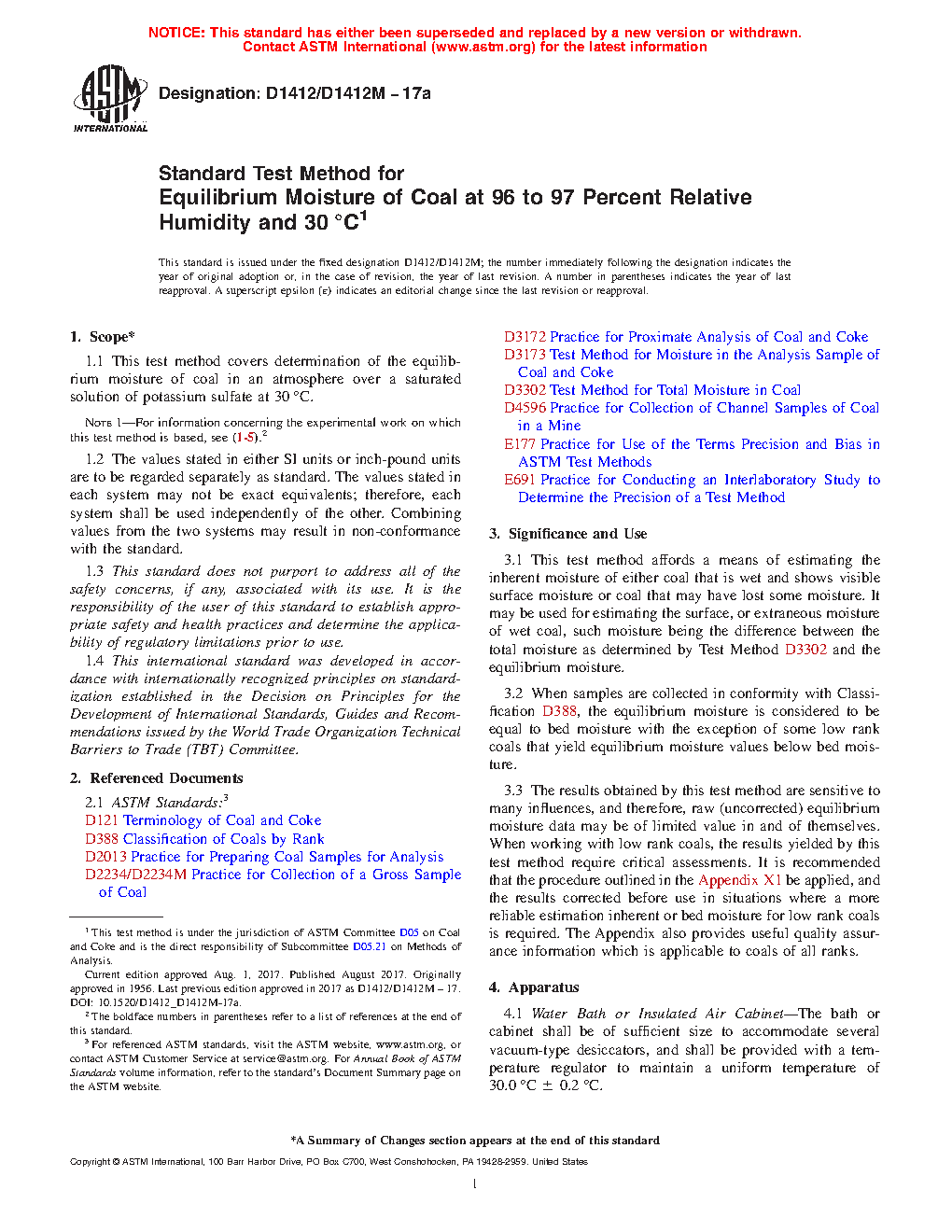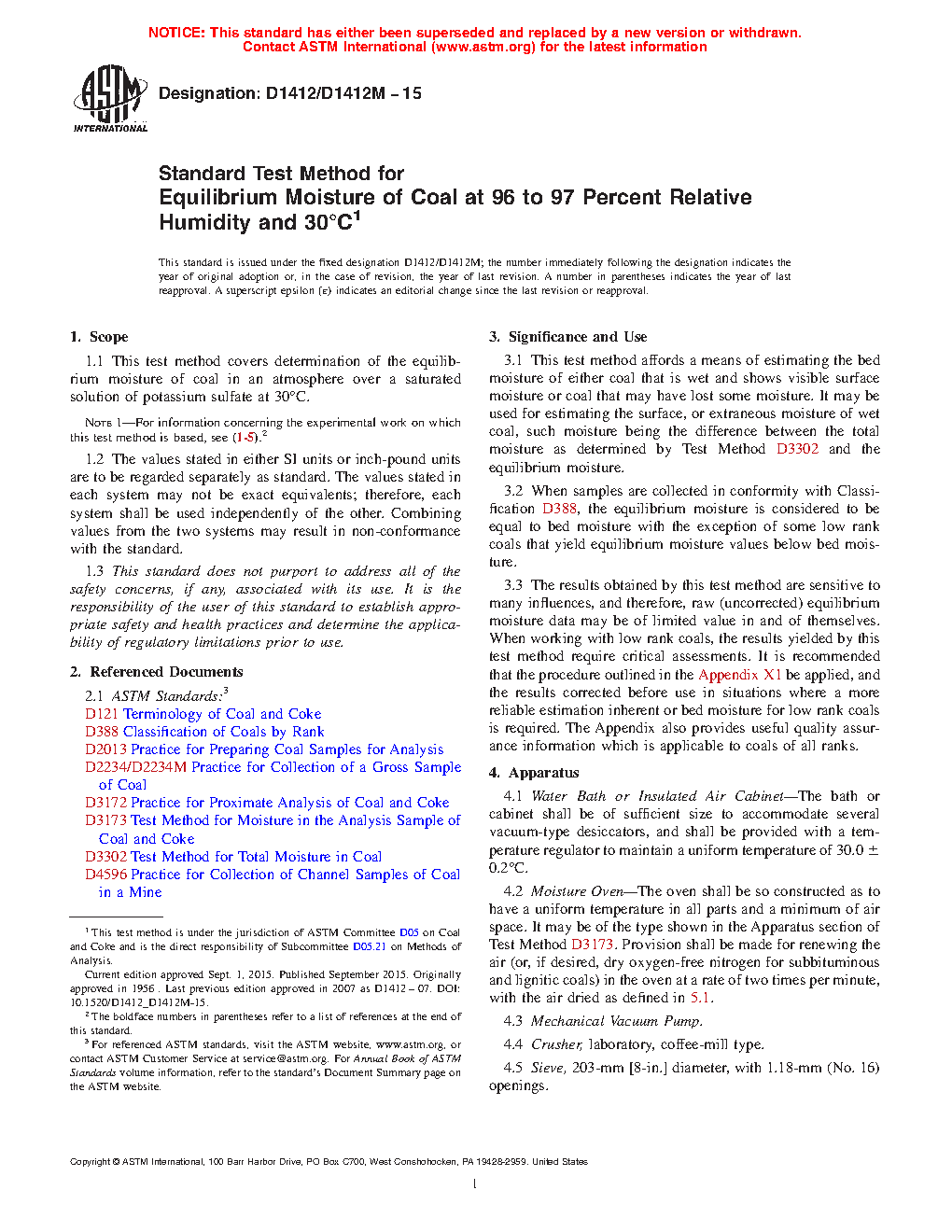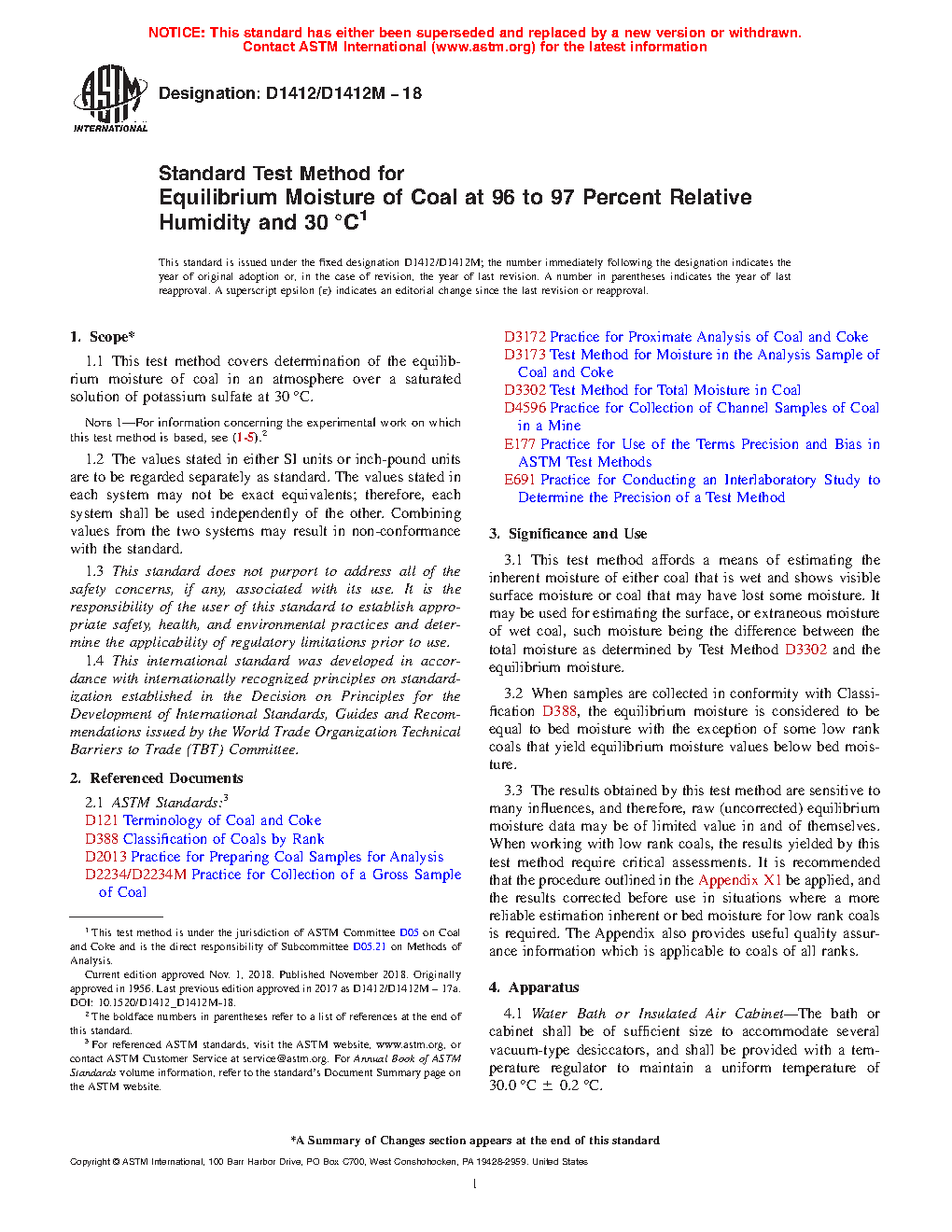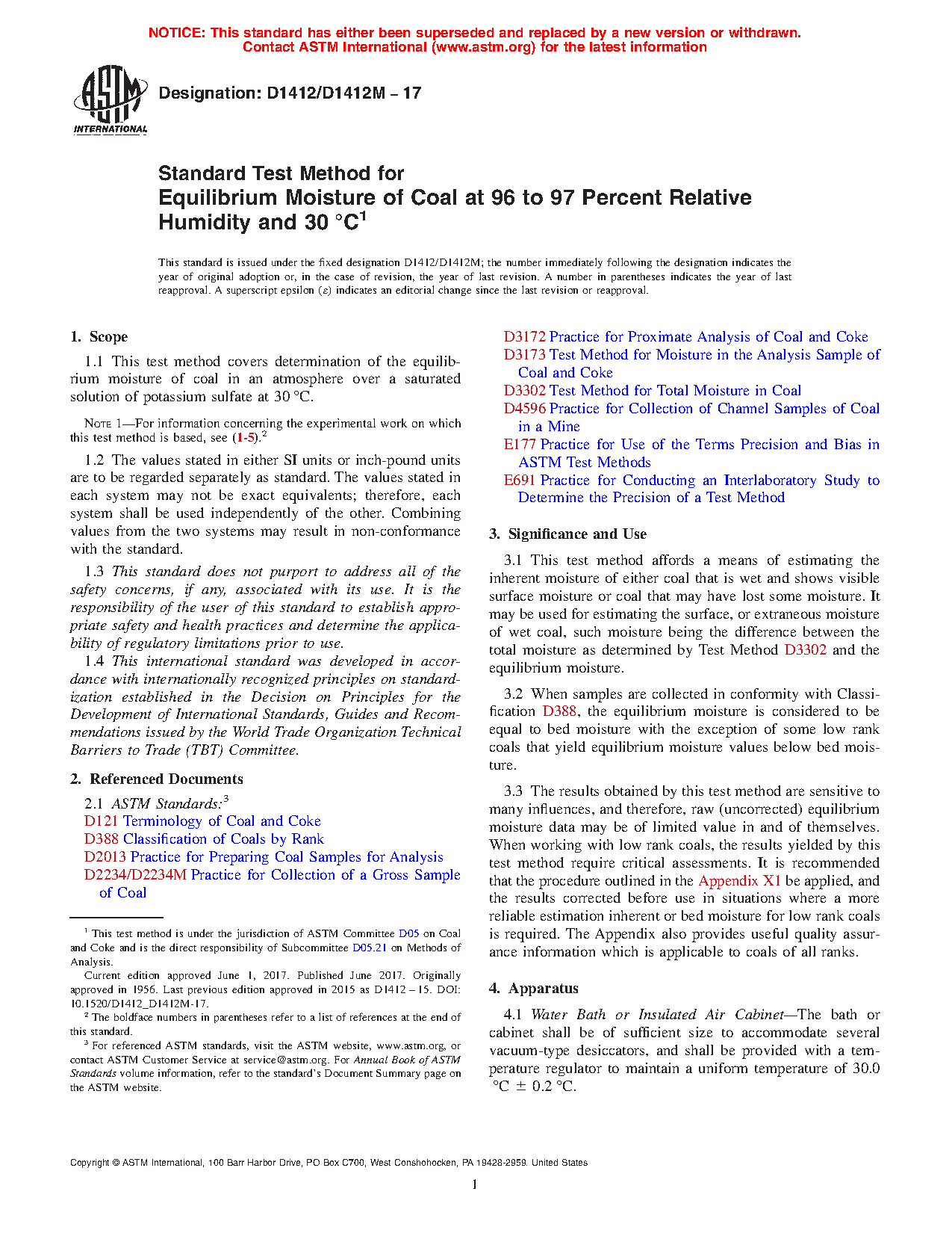 3.3 The results obtained by this test method are sensitive to many influences, and therefore, raw (uncorrected) equilibrium moisture data may be of limited value in and of themselves. When working with low rank coals, the results yielded by this test method require critical assessments. It is recommended that the procedure outlined in the Appendix X1 be applied, and the results corrected before use in situations where a more reliable estimation inherent or bed moisture for low rank coals is required. The Appendix also provides useful quality assurance information which is applicable to coals of all ranks.