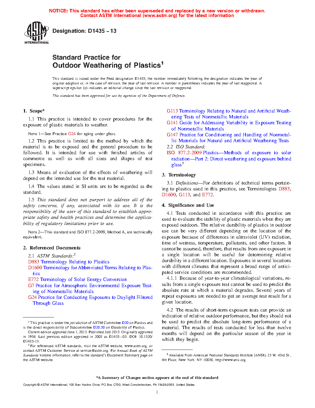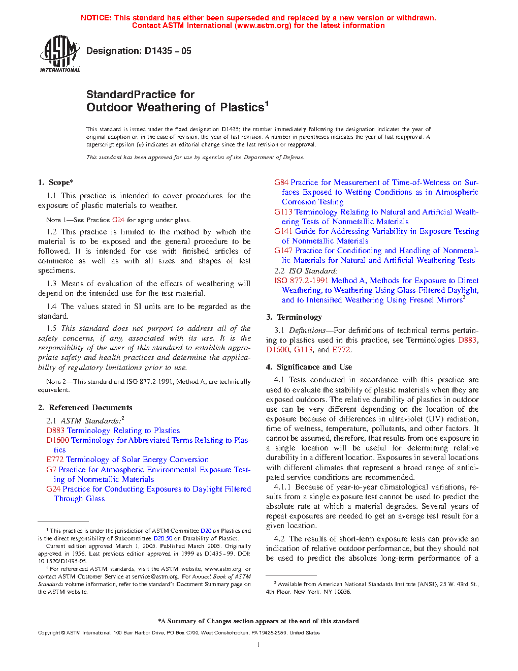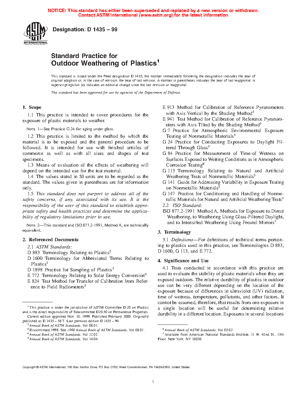 4.1 Tests conducted in accordance with this practice are used to evaluate the stability of plastic materials when they are exposed outdoors. The relative durability of plastics in outdoor use can be very different depending on the location of the exposure because of differences in ultraviolet (UV) radiation, time of wetness, temperature, pollutants, and other factors. It cannot be assumed, therefore, that results from one exposure in a single location will be useful for determining relative durability in a different location. Exposures in several locations with different climates that represent a broad range of anticipated service conditions are recommended.