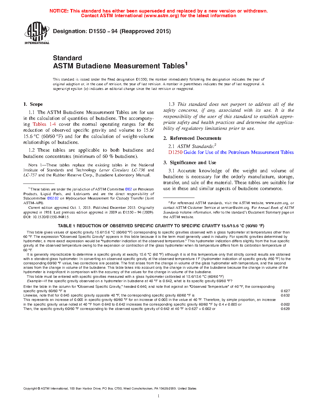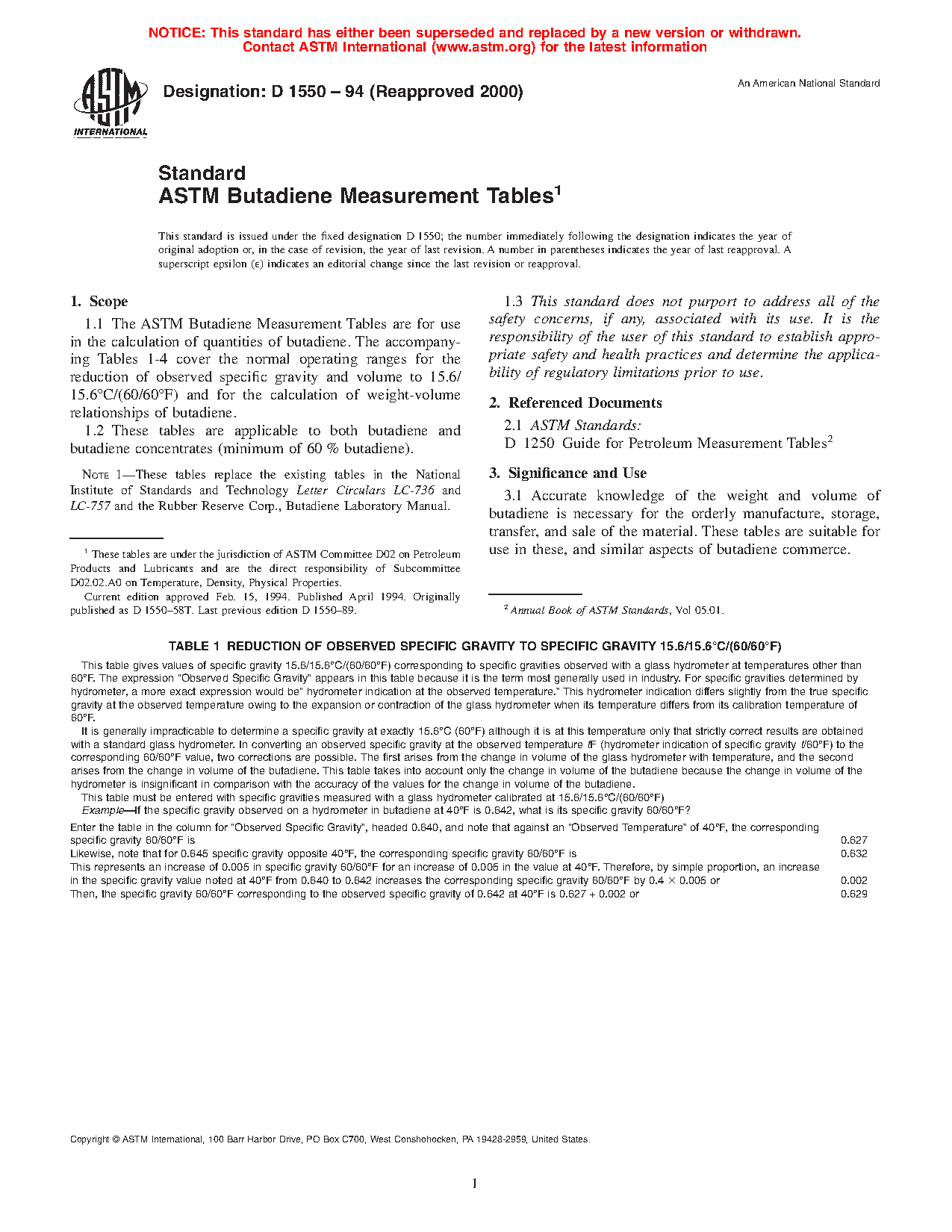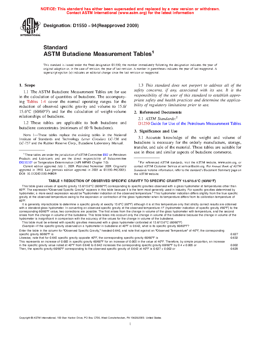 Note 1: These tables replace the existing tables in the National Institute of Standards and Technology Letter Circulars LC-736 and LC-757 and the Rubber Reserve Corp., Butadiene Laboratory Manual.