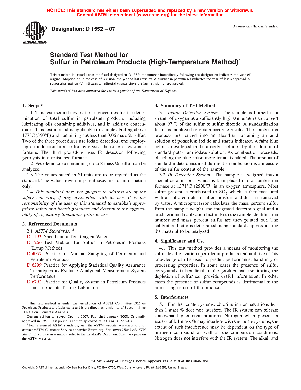 Note 1: The D1552–08 (2014) version of this standard contained two other procedures using iodate titrations. Since these procedures are no longer being used in the industry laboratories based on a survey of D02.SC 3 laboratories conducted in September 2014, they are being deleted. For earlier information on the deleted procedures, D1552–08 (2014) may be perused.