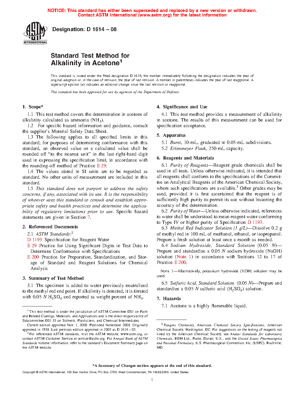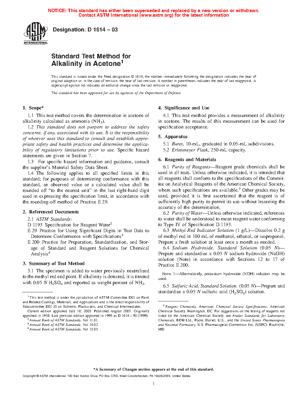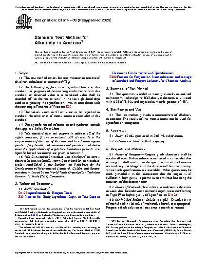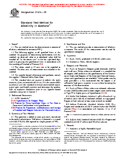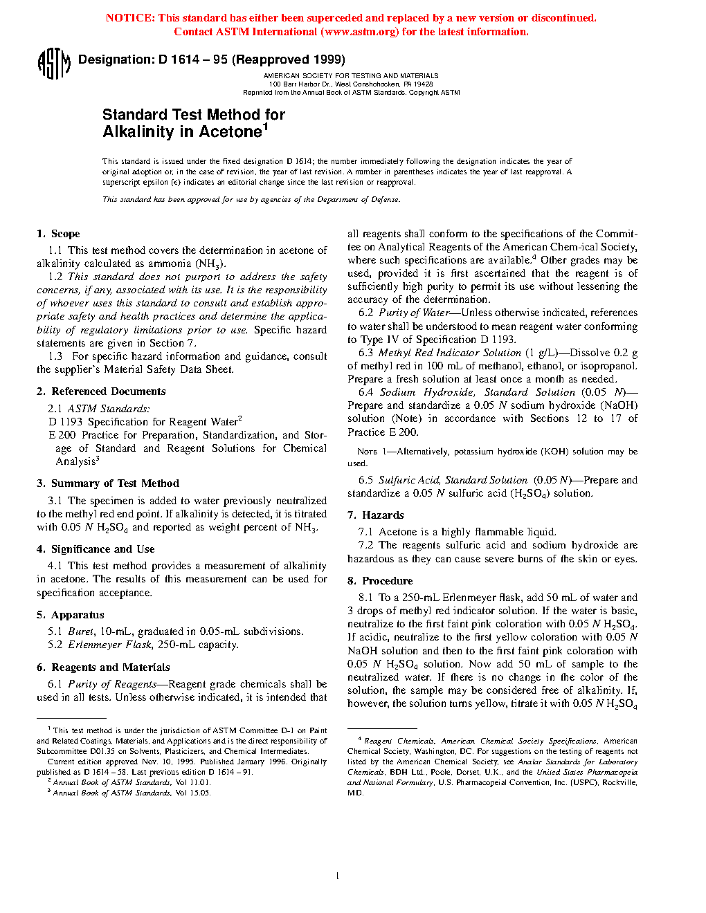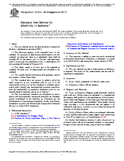 1.1 This test method covers the determination in acetone of alkalinity calculated as ammonia (NH3).